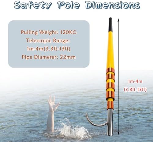 Ensure the safety of swimmers with our high-quality lifesaving hooks, expertly crafted for emergency assistance during water-related incidents. Essential for families, swimming clubs, and recreational water activities, these hooks provide peace of mind for both experienced swimmers and non-swimmers alike. **Specifications:** - **Material:** fiberglass for enhanced strength and resilience - **Telescopic Pole:** Options available in 400cm, 500cm, and 600cm lengths to suit various needs - **Pulling Capacity:** Supports weights up to 120 KG, ensuring reliable performance in emergencies **Features:** - **Extendable Design:** Effortlessly adjust the pole length for optimal reach during critical moments - **Lightweight and Portable:** Easy to store and transport, making it an ideal companion for trips to the beach, yacht outings, or visits to water parks - **Versatile Utility:** Perfect for retrieving items such as clothing or debris from pools, lakes, and oceans, enhancing overall water safety **Usage Scenarios:** Whether you're at a swimming pool, beach, or on a boat, our lifesaving hooks are an invaluable addition to your safety gear. They are not only crucial for emergencies but also serve as effective teaching aids in aquatic settings, promoting water safety education. **Note:** - Minor variations may occur due to manual measurements and production batches. - Actual product images may differ slightly due to lighting conditions during photography. **Customer Support:** Our dedicated service team is available 24/7 to assist with any questions or concerns, ensuring you have the support you need when it matters most.