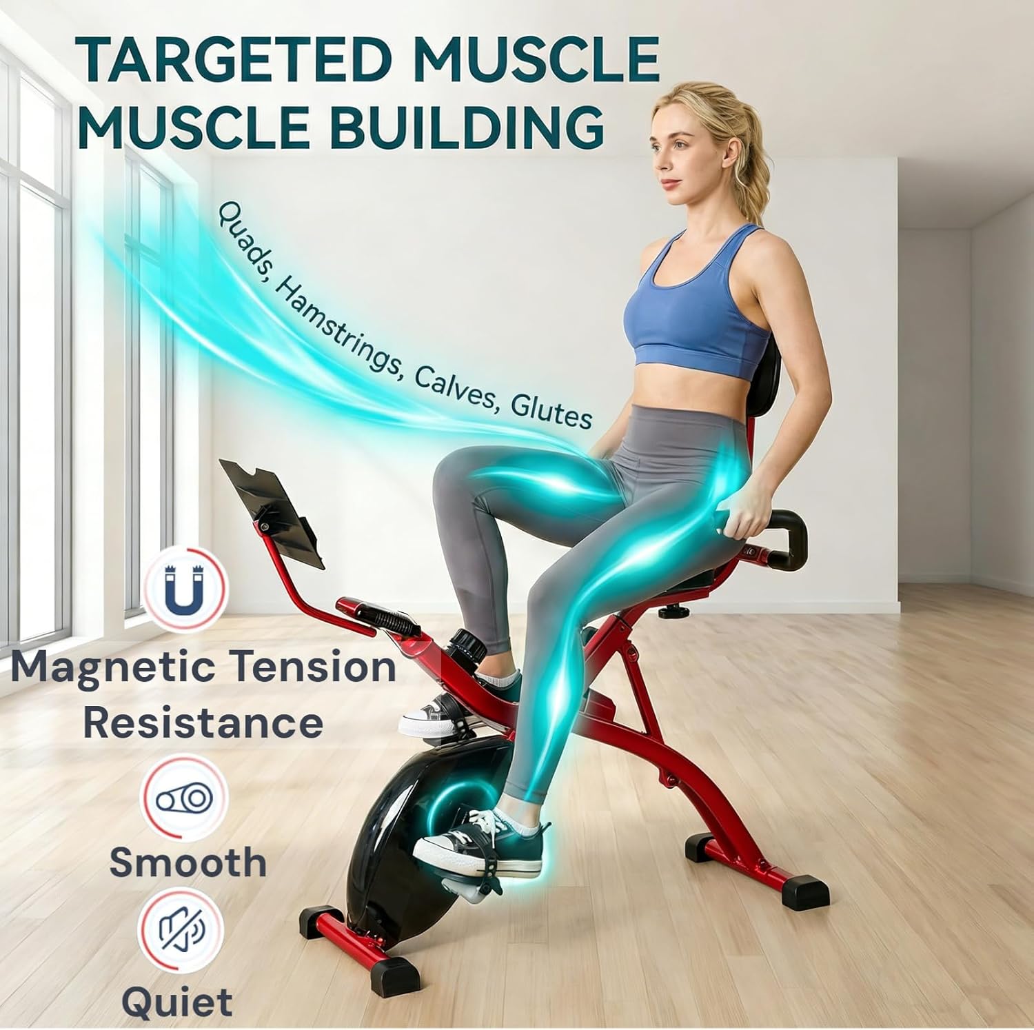 CUDOEEAI BX360 Recumbent Exercise Bike This recumbent exercise bike effectively enhances cardiovascular function and tightens muscles. As a foldable recumbent model, it not only retains the same functions as the aerobic exercise bikes in today's gyms but also serves as a perfect space-saving aerobic equipment. Adopting an ergonomic design, the multi-directionally adjustable seat can quickly fit users of different heights. The stretched and relaxed sitting posture effectively reduces back pressure. Exclusively designed for the elderly with thoughtful details, it delivers an extremely comfortable workout experience. The low step-through frame design ensures safer mounting and dismounting. Equipped with textured non-slip pedals, thickened foam grips, ergonomic handlebars, as well as a large-sized cushioned upholstered seat and backrest, it doubles the riding comfort and stability. Featuring 8 levels of magnetic resistance adjustment, the magnetic resistance system operates quietly without noise, so your workout won't disturb yourself or others. The built-in monitor tracks exercise data in real time, allowing you to accurately control the rhythm of each training session. After your daily aerobic training, you can simply fold it up for storage, which is worry-free and space-saving.