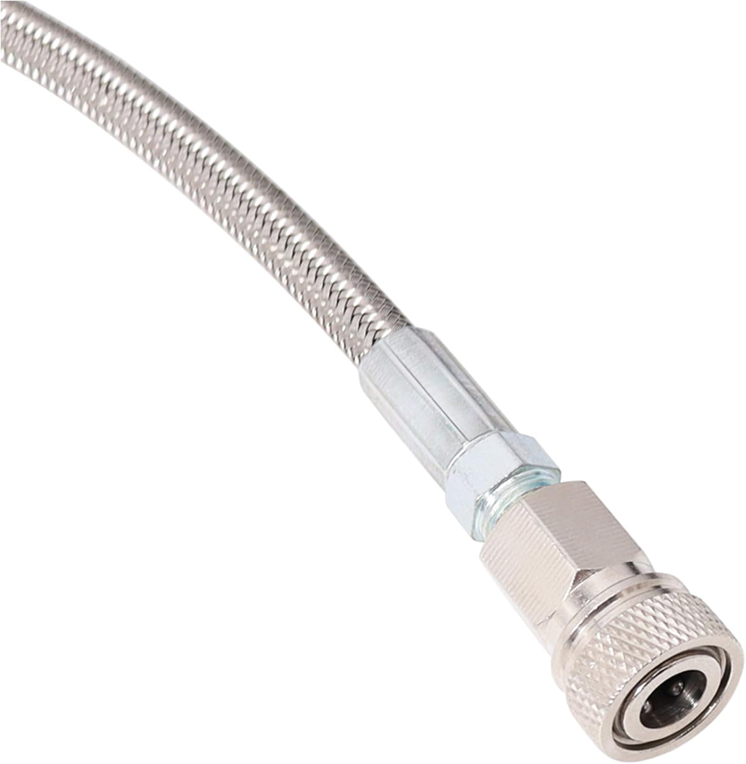 DIN VALVE SCUBA ADAPTER: DIN valve scuba adapter is convenient and reliable design allow us to connect each fill adapter to the male air tool fittings simply, then your tank will be filled up quickly. Very suitable for outdoor use. If the seal is not tight, please check whether the O-ring seal is abnormal. If you have any questions, we can help you out. USE IT SAFELY: PCP scuba tank adapter's working pressure up to 4500 psi, Max up to 6000 psi. You can safely fill the compressed air in the diving tank with PCP air guns into paintball, HPA co2 tanks. However, to be safe, we don't recommend that you use excessive pressure values for a long time. NEW UPGRADE: Yoke fill station equipped with a 36-inch extended stainless steel braided fuel filler pipe for longer service life and 8mm standard female quick-disconnect coupling plug for enhanced convenience. The latest double O-ring design can extend the service life. WIDE APPLICABILITY: HPA tank filling adapter compatible with standard K-valve, J-valve and H-valve. You can use HPA tank filling adapter for PCP rifle, fire-fighting, snorkeling dive system, scuba shop, and paintball tanks filling, etc. SATISFYING EXPERIENCE: We have full confidence in the quality of the DIN valve scuba adapter.
