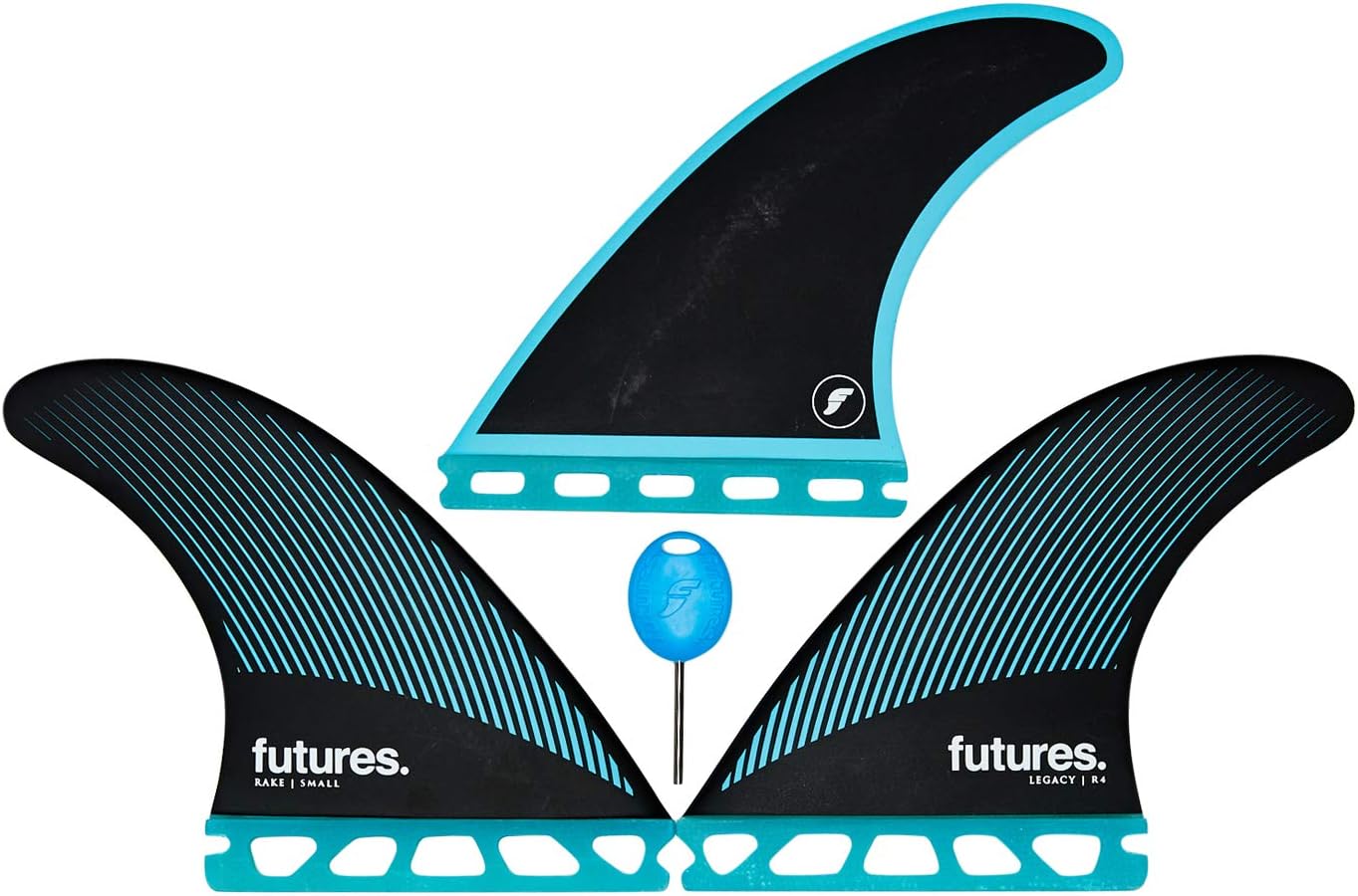 The R4 Legacy Series Thruster is a compact fin, featuring a drawn-out rake template, offering balanced control for enhanced grip during turns.