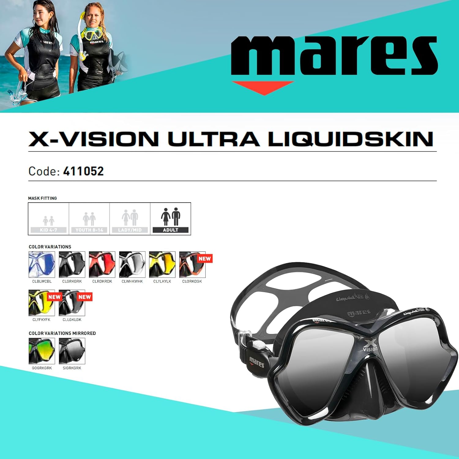 New bi-silicone skirt contoured for enhanced fit and comfort. Low drag design. Small ribs around nose to relieve pressure. Field of vision 20% wider than previous version. X-shaped bi-silicone strap