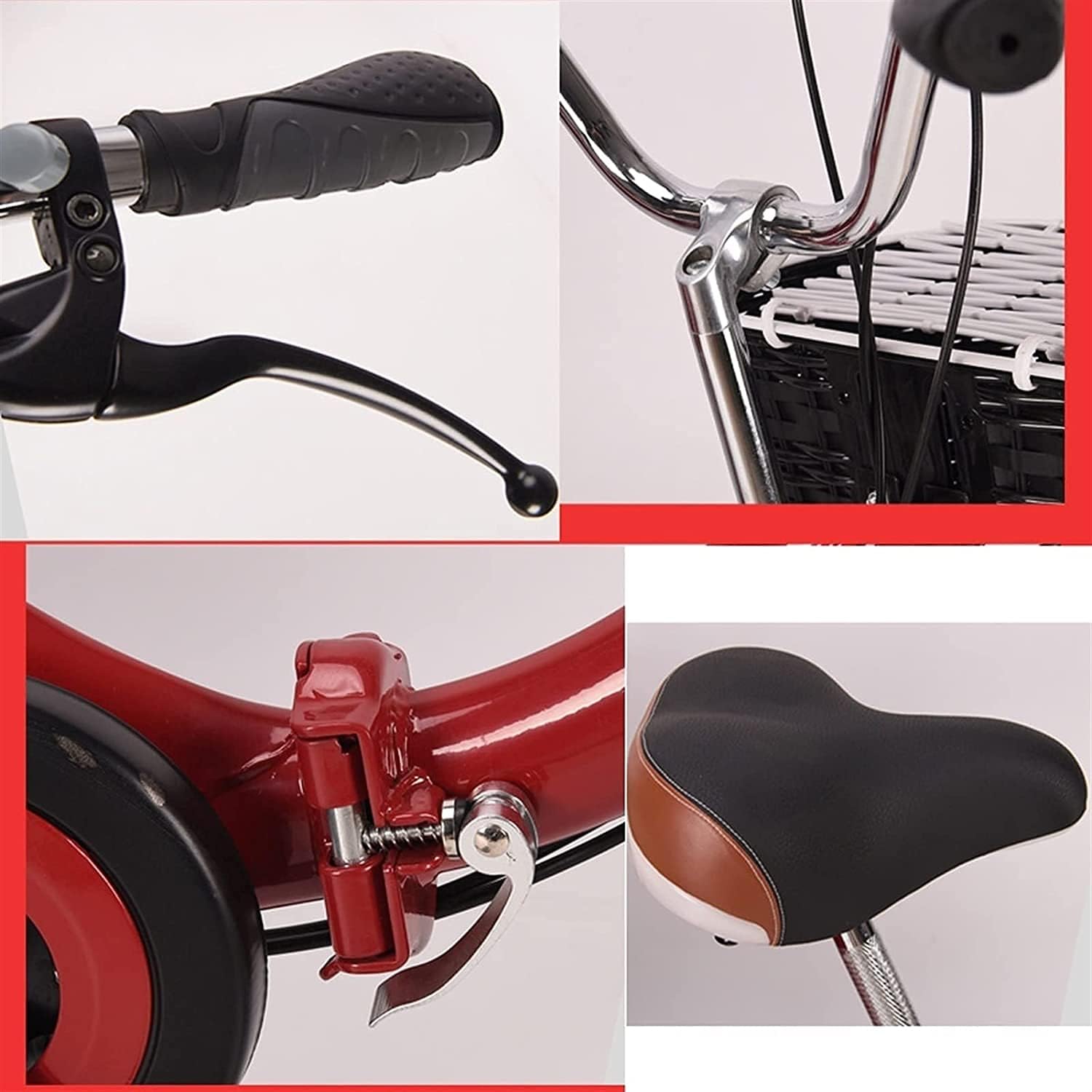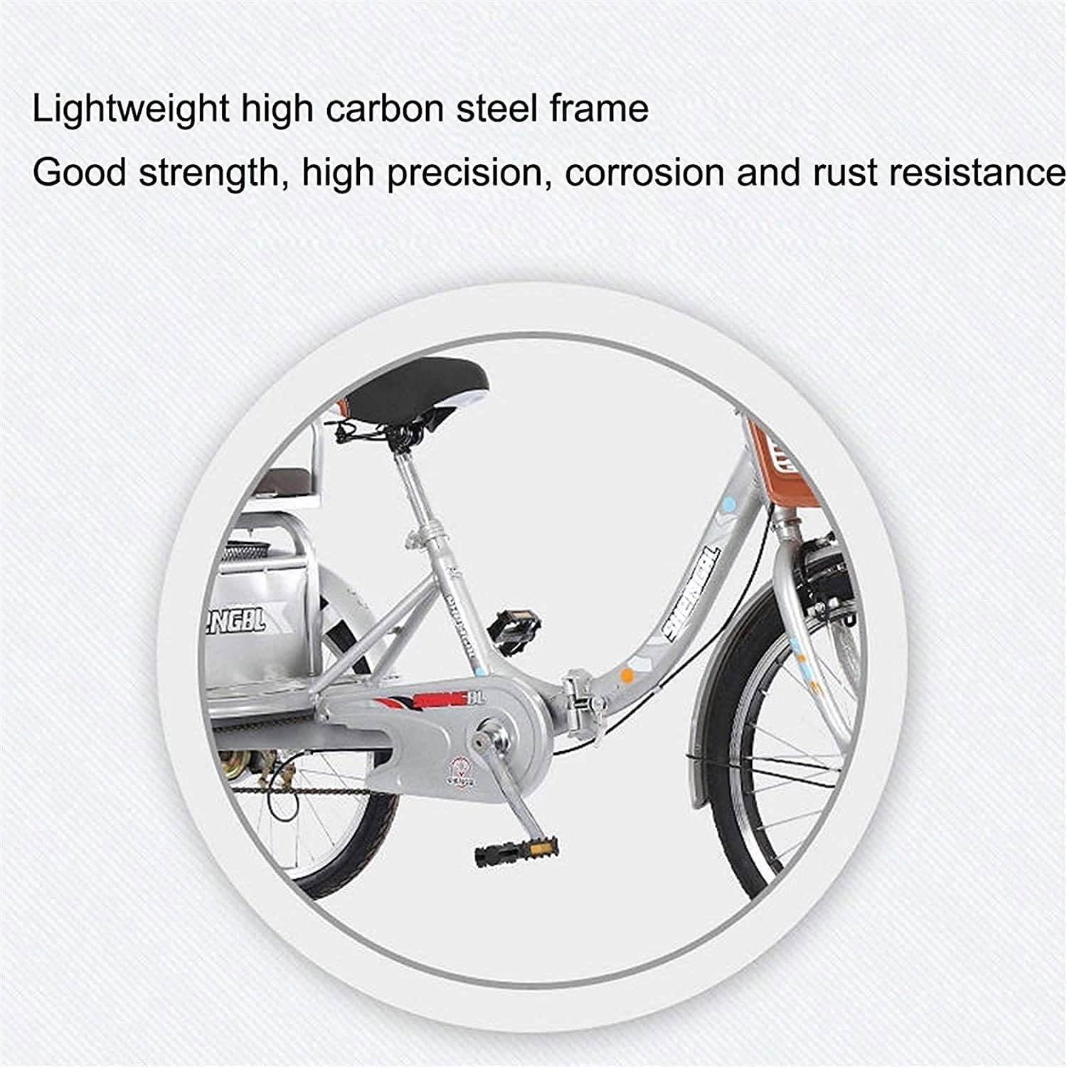 ※(. ? ? ?)※ Bicycle is the best gift for parents and family. Your wife can use it to pick up and drop off children. ※(. ? ? ?)※ Please note: You need to install it yourself, the installation is relatively simple, you can contact us if you have any questions. Since the tricycle is a large product, the product may be slightly scratched during transportation. If you mind, please don't buy. Parameter: Wheels: 16inches Speed: 1 speed Size: 140x60x100cm Suitable for riders: height/weight 140-175cm/150kg e: high-hardness steel thickened e Handlebar: Aluminum Saddle: Comfortable leather saddle Fork: 16-inch carbon steel front fork Chain press: multi-function press Rim: Aluminum alloy Tires: Anti-skid tires Brake: special brake for tricycle Pedals: high wear-resistant pedals Bottom shaft: sealed bottom shaft Advantage: 1. Large and comfortable seat and backrest 2. The large-capacity folding iron basket is used to store supplies. The size of the shopping basket is 40x40x25cm. 3. The sturdy steel structure supports the rider's weight up to 150kg 4. The big wheels with mudguards keep them clean and dry 5. Ergonomic rubber handle, comfortable feel 6. The upholstered seat with spring makes you feel more comfortable Packing list: adult tricycle Note: You have to install it yourself, but don't worry, it's easy ※(. ? ? ?)※ You can contact us at any time if you have any questions in the process of buying products, we will ask you to answer your questions, and hope that you have a happy shopping and bring you a happy shopping experience!