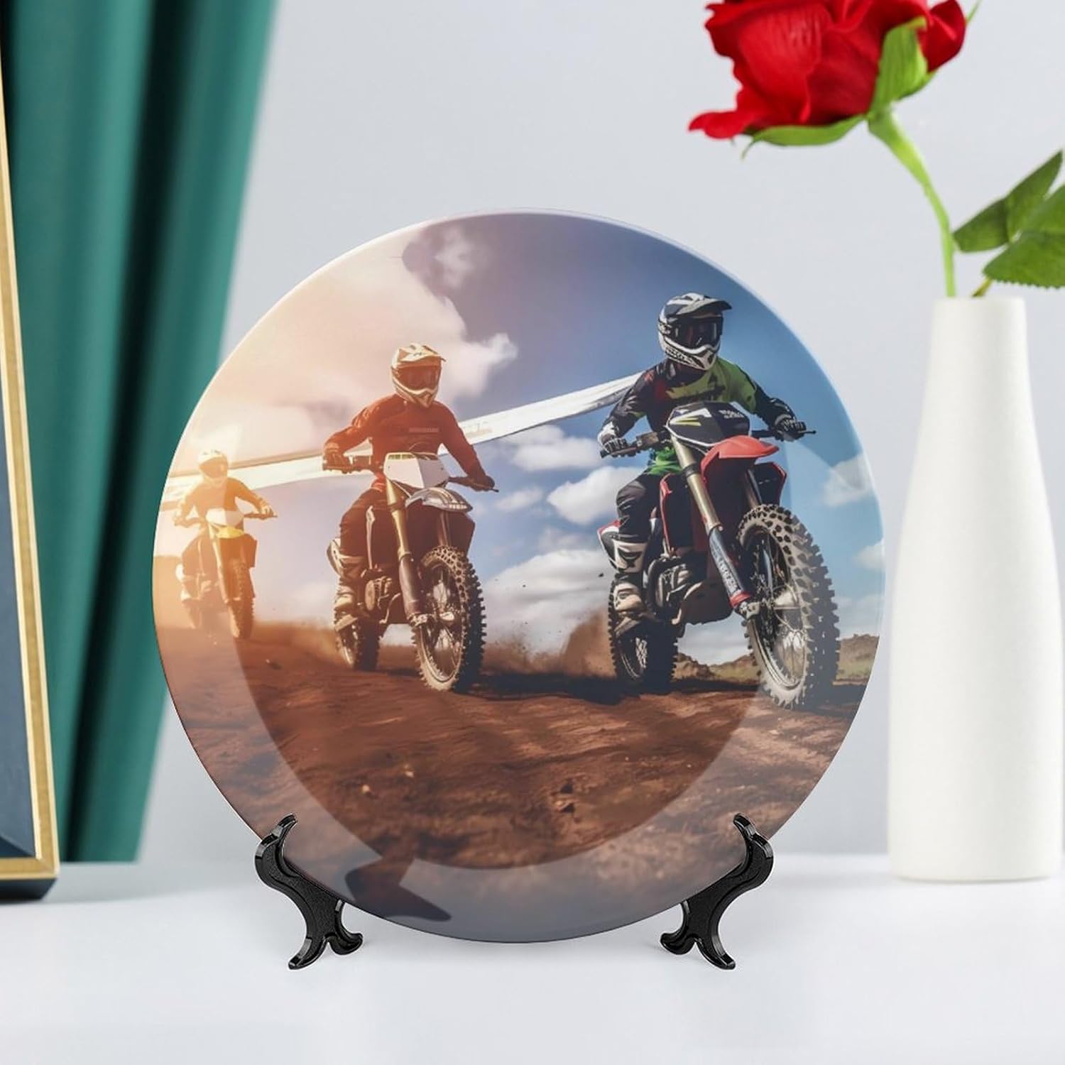 Printed Ceramic Hanging Decorative Plate Custom Ceramic Decorative Plates with Display Stand Personalized Bone China Decorative Plate,the decorative ceramic wall plates can be placed in the living room, shelf arrangement or side table to add an elegant atmosphere