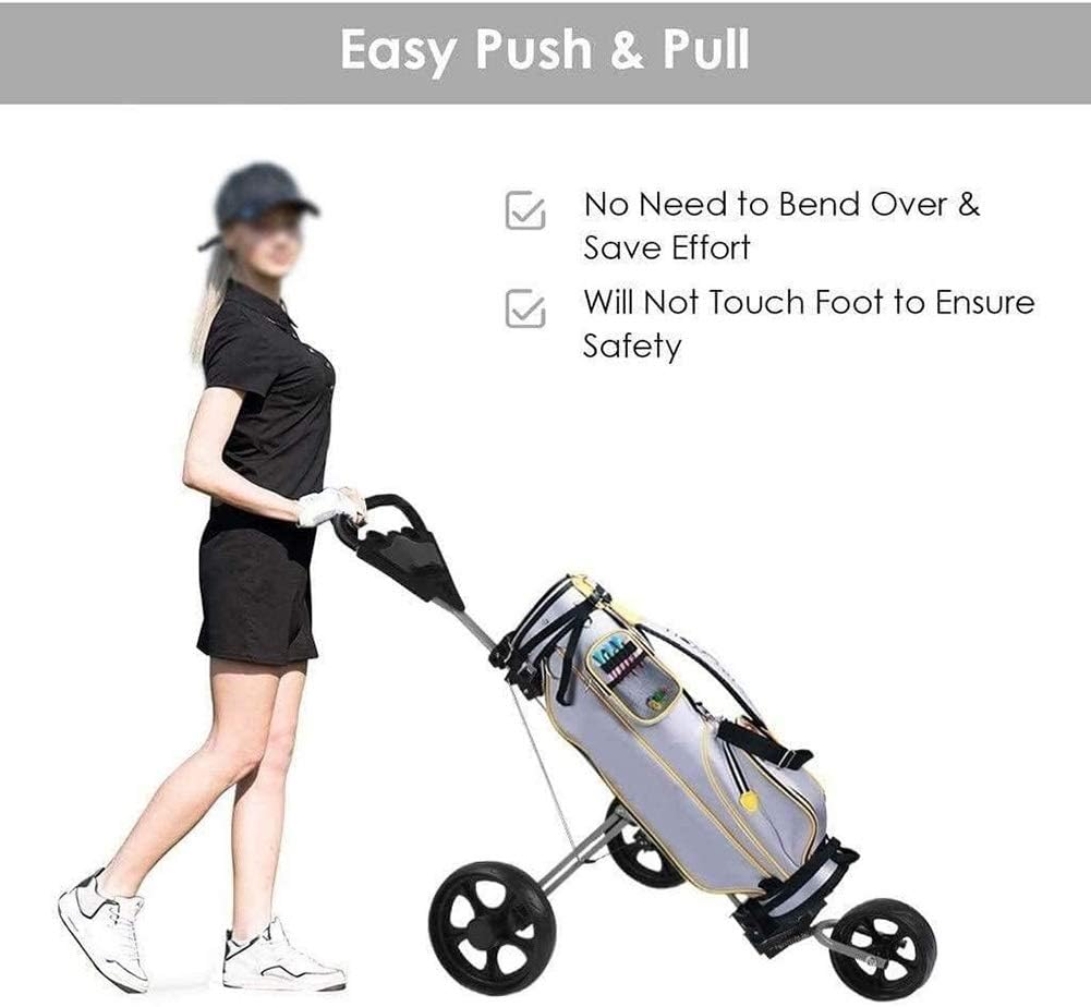 Golf carts, ideal golf accessories for men and women. Suitable for golf carts, golf cart accessories and men's and women's golf clubs, this foldable golf cart is also equipped with a ball wheel, which can run smoothly on any terrain. Just gently pull to engage and release.Specifications:Material: Steel Frame +PP with EVA cover WheelsOverall dimension: As picture showsFolded Size: 27" x 18" x 6.5"Front Wheel Size: 7.5"Rear Wheel Size: 10"Package Includes:1 x Golf Cart