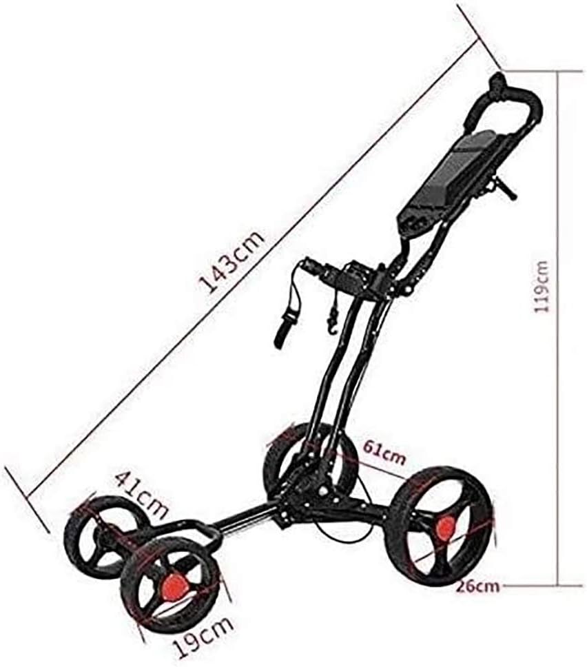 Golf carts, ideal golf accessories for men and women. Suitable for golf carts, golf cart accessories and men's and women's golf clubs, this foldable golf cart is also equipped with a ball wheel, which can run smoothly on any terrain. Just gently pull to engage and release.Specification:Color: BlackMaterial: Aluminum alloyUnfold size: 81 * 45 * 37CMRear wheel diameter: 27cmFront wheel: 19cmGolf Bag holder: 80cmWeight: 6.9KgPackage includes:1X golf cart