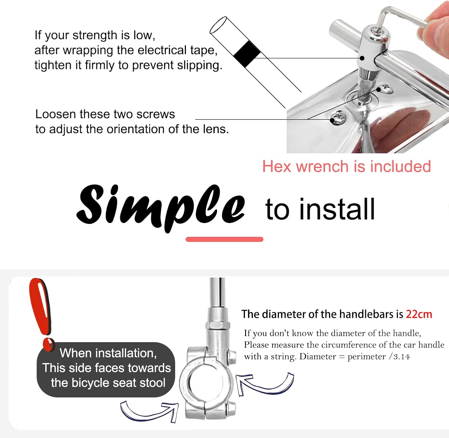 Good present: No doubt cycling is fun and with a view mirror you can see whats behind you or coming up real fast. Give it to your spouse, parents, or friends who are using a vintage bike. They will be very happy. This present keeps them safe on the road. Application: 1 piece mirror weighs 300g, so it's not suitable for sport bikes. Its classical style is suitable for vintage bikes. Make the bike look more classical and beautiful. Dual-Sided Anti-Slip Studs: The pedal surface is equipped with 12 raised anti-slip studs that firmly grip shoe soles, delivering exceptional traction. Even during intense riding on steep terrain, your feet stay securely in place, minimizing slippage risks. Quick Installation: The pedals can be installed using the hex wrench. The pedals are labeled L and R and are tightened in the direction of the head of the bike. A dab of grease on the threads will help with the next replacement. Durable Bearings: The sealed ball bearings provide superior lubrication for smooth bicycle pedal rotation while effectively preventing the ingress of rainwater and dust, ensuring stable and reliable performance for daily riding. if you have any questions, please feel free to contact us, I will provide solutions within 24 hours