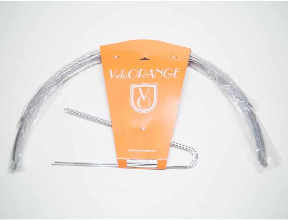 Enhance your cycling experience with the Velo Orange Smooth Fenders - 700c, 38mm, Silver. Crafted from durable, lightweight aluminum, these fenders combine sleek style with high-performance engineering to keep you dry and comfortable in all weather conditions. Designed for 700c wheels, they are perfect for road bikes, touring bicycles, or commuting setups that demand both function and aesthetic appeal. Materials & Construction: Made from aluminum, the Velo Orange Smooth Fenders offer excellent corrosion resistance, longevity, and a polished, aesthetically pleasing finish. Their extra-long design (front fenders measuring 80cm and rear fenders 110cm) provides superior coverage, shielding you from spray, mud, and road debris. Performance & Engineering: Engineered for optimal performance, these fenders are pre-drilled for easy installation and feature a generous 38mm width to accommodate tires up to 27mm wide. The polished aluminum stays, along with included hardware such as R-clips, screws, stay-to-fender closed eyelet bolts, a fork crown daruma, sliding brackets, and leather washers, ensure secure mounting and long-lasting durability. Components & Technology: The fenders include strategically pre-drilled mounting points and hardware designed for compatibility with multiple bike frames and fork types. While not pre-drilled for Velo Leather Mud-Flaps, they provide versatile mounting options for added customization. The sliding brackets facilitate precise fit and easy adjustments, ensuring a perfect fit for your bike. Style & Use Case: With a sleek silver finish and clean, smooth contours, these fenders elevate the aesthetics of any bicycle. Ideal for year-round commuting, touring adventures, or leisurely rides in wet conditions, they provide reliable protection without sacrificing style. Whether you're navigating city streets or exploring country roads, these fenders will keep you dry and confident. Innovative & Differentiating Features: Beyond their at