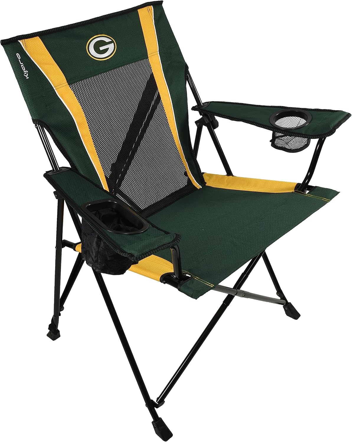 The Kijaro Dual Lock Chair provides a premium seating experience with no sag seating. This adult camping chair locks in the folded position for easy portability without the carry bag and locks in the open position for maximum seat and back support. The Kijaro Dual Lock Chair features durable diamond ripstop fabric and breathable mesh on the seat back. This folding chair is perfect for all your outdoor events including tailgating, camping, watching your favorite sports team, or fishing! This lawn chair also features an oversized cup holder, all-in-one cupholder, and mesh pockets. Use the included carry bag to carry your portable camping chair or use the Dual Lock Experience to lock your chair closed and carry with the attached carry strap. This Kijaro Dual Lock Pro Chair is perfect for all of your tailgating events with our high quality NFL Team logo embroidery.