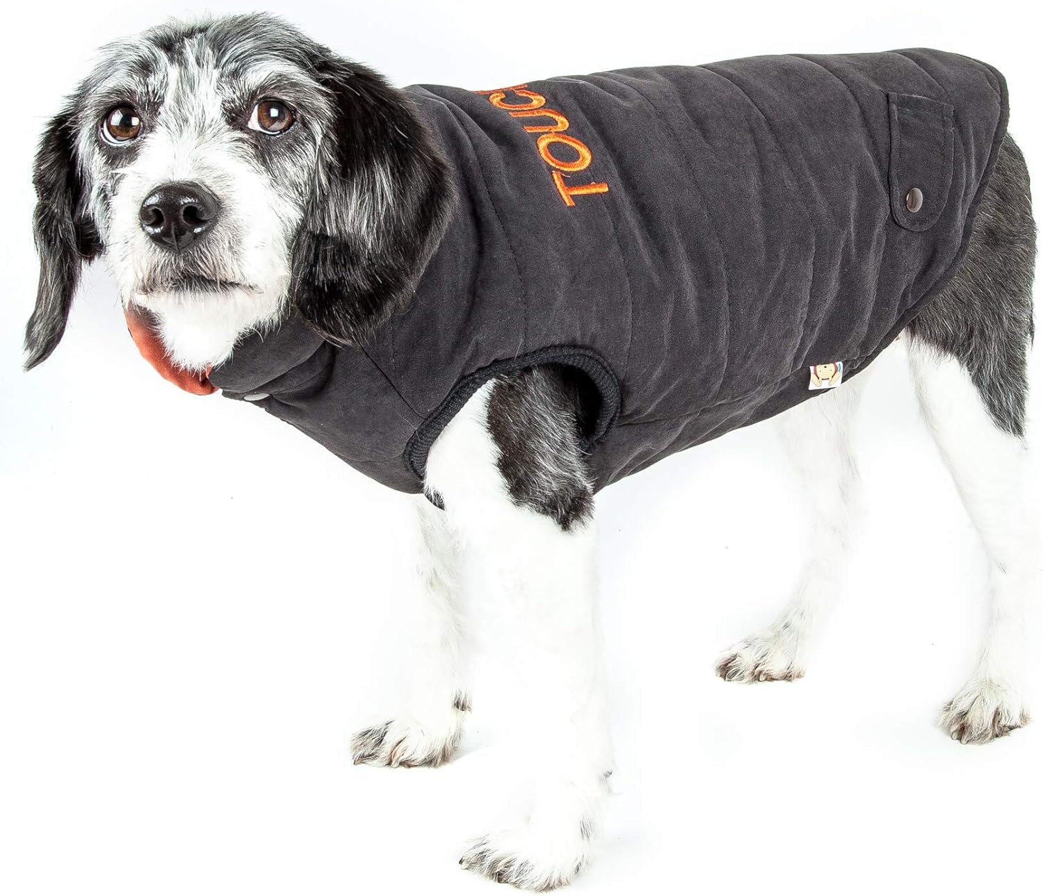 The Touch dog Waggin Swag Reversible Insulated Pet Coat is completely Reversible with nice accented colors on the reverse side. Composed of a Nylon and Polyester Blended Outer shell. The Waggin Swag coat is furthermore Inner-Lined with added comfortable Inner plush Poly-fill with customized embroidery and label stitching and accented trims on the reverse. Features handcrafted line stitching. Additionally, this coat features Velcro Belly closures for easy On/Off access. Available in Multiple Sizes and Colors. Sizing Guide: From Back of Neck to Tail area ("In" Inches) 8" : EXTRA SMALL 10-12": SMALL 14-16": MEDIUM 18-20": LARGE 22-24": EXTRA LARGE.