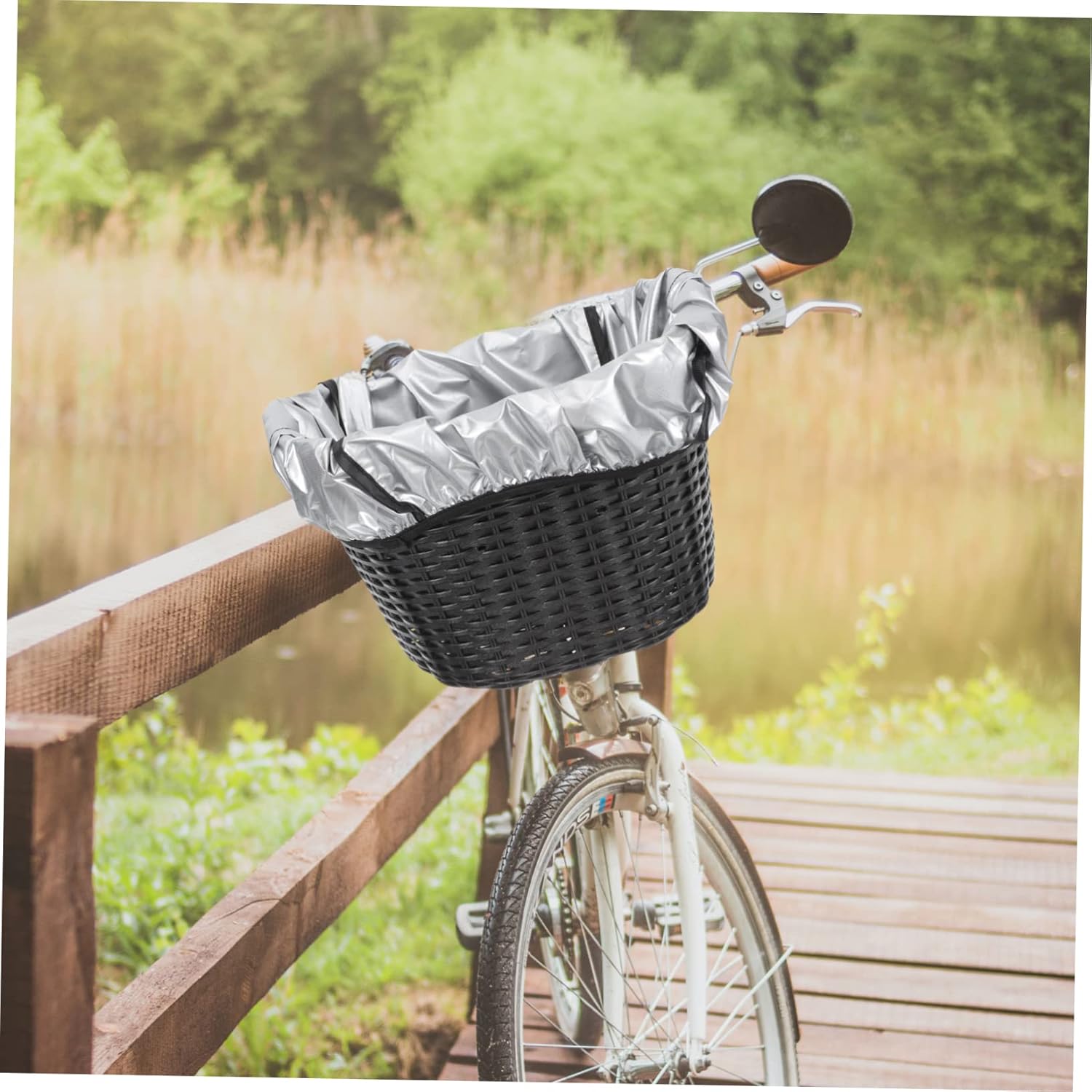 Package Include 1 x Bike Basket Waterproof Liner Features -Color:Black bike basket liners -Material:Oxford Cloth Bike Basket Liner -Size:42.00X33.00X25.00cm/16.51X12.97X9.82in Practical Bike Basket Liner -This waterproof Bike Basket Rain Cover is for hiking, camping, traveling, cycling, hunting, climbing cycle basket waterproof cover. -A rain cover for your bike basket, and can prevent your bike basket far from rain or bike basket waterproof cover. -High-class rainproof, scratch-resistant, wear-resistant cloth, protecting basket from scratch, , sand bike rain cover. -This Cycling Basket Cover is compact, lightweight and can be folded and put into the carrying pouch Waterproof Cycling Basket Liner. -Applies to bicycles baskets, including front and rear bike baskets, fits bike baskets waterproof basket cover.Goods InformationPractical Basket Liner It is outdoor Cycling Basket Rain Cover, a must-have rain precaution item for preventing your bike basket from rain or water, practical and convenient, which is a accessory for your bike basket! Made of high-class tear resistant and waterproof material, rainy activities.basket liner for bike basket Just keep one in your basket, you're gonna need it someday!
