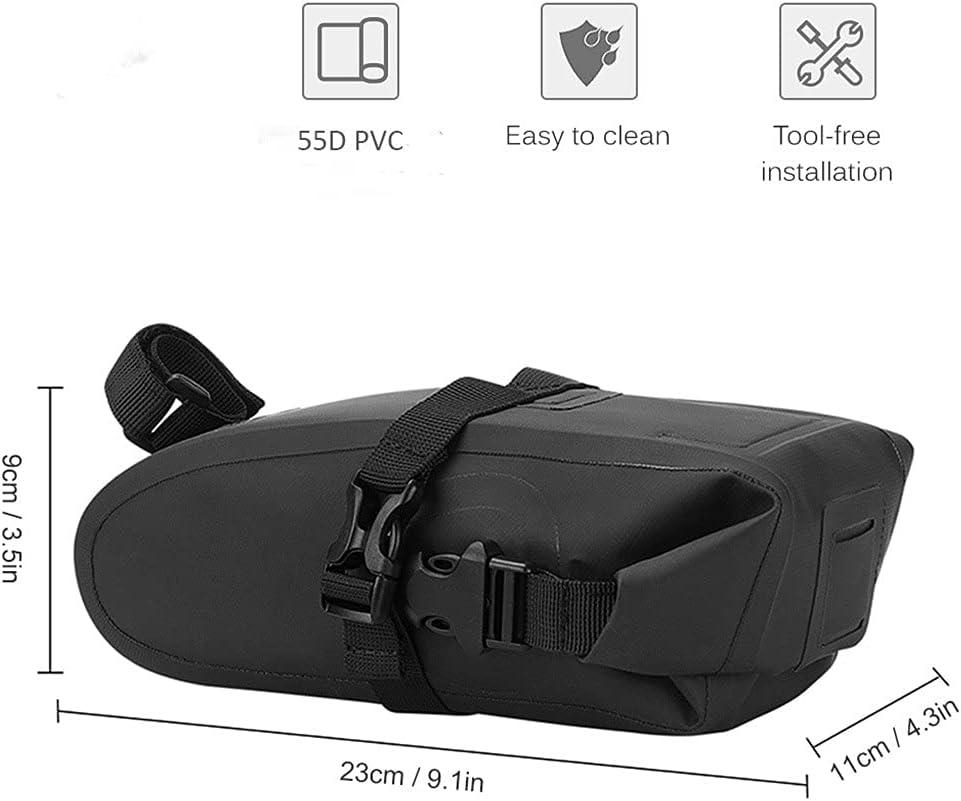Feature:Portable tool-free installation, convenient installation and quick disassembly.Made of PVC material + high-frequency welding technology, it is sturdy and , has superior waterproof performance, and is not easy to deform.Roll-up design, buckle, good sealing performance, keep your valuables dry.Plenty of space to store your smart phones, wallets, keys, cards and other daily necessities.Reflective signs improve visibility at night and improve safety.Double-sided buckle + strong hook and loop belt, more stable and stable.specification:Material: PVC.Colour: Black.Capacity: 1LBag size: 23 * 11 * 9 cm/9.1 * 4.3 * 3.5 Bag weight: 186 g/6.6 ozPacking size: 30 * 15 * 12 cm/11.8 * 5.9 * 4.7 Package weight: 200 g/7.1 ozpacking list: 1 * Bicycle bagnotes:1. Manual measurement, please allow 1~3mm error, thank you.2. Due to the difference of different monitors, the picture may not reflect the actual color of the project. We that the is the same as the picture.Suitable for a beautiful storage bag for road bikes.