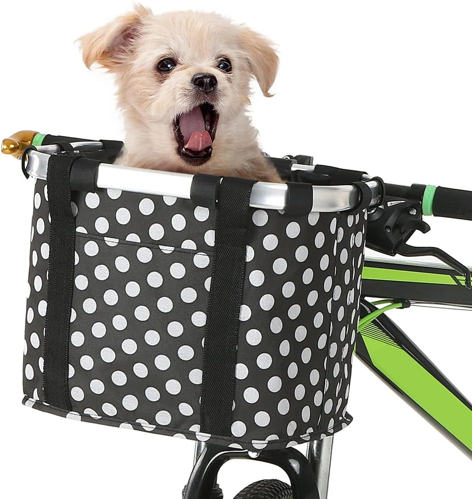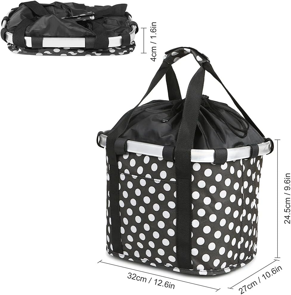 Features:Wear-resistant Oxford cloth, aluminum frame, strong and .The drawstring seal is convenient for access to the contents; the inner zipper pocket can store valuables; the front pocket for small items.The quick release installation system is very easy to install on the handlebar of the bicycle.With mesh belts, the basket can be used as a handbag after being removed from the handlebar.Foldable and compact, convenient for storage, and can be easily put into backpacks, suitcases, and car trunks.specification:Material: Oxford clothSize: 32*27*24.5cmFolding: 32*27*4cmWeight: approx. 780gpacking list:1 * Bicycle basket2 *Support rod1 * A set of mounting washersnote:1. Manual measurement, please allow 1~3mm error, thank you.2. Due to the difference of different monitors, the picture may not reflect the actual color of the project. We the is the same as the picture.Suitable for a beautiful storage bag for road bikes.