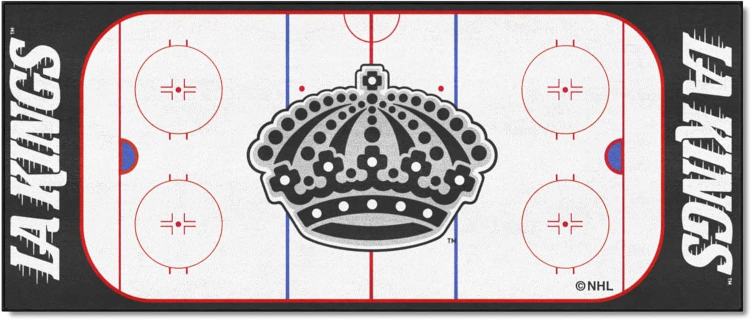 Show your love for hockey with an officially licensed Rink Runner Mat! This rink shaped area rug features your favorite team’s logos at both ends of the rink as well as center ice. At 30 inches tall by 72 inches long this mat is perfect for any game room, man cave, bedroom and more. The carpet is a soft nylon so that is can hold up against moderate to high foot traffic. To make sure that the mat last for years we have used vinyl for the backing and then serged the edges of the mat. Made in the USA.