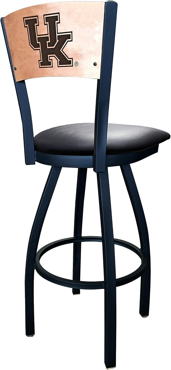 Made for the ultimate sports fan, you will be proud to show where your loyalty lies with this impressive Officially Licensed stool from the Holland Bar Stool Co. Add a touch of class with this L038 Laser Engraved, swivel logo stool that has a medium finished wood back that doesn't just add comfort, but sophistication. The back is first laser engraved with your teams logo on state of the art equipment and then finished and sealed to ensure the best quality product possible. You won't find a higher quality logo stool on the market. The frame is made from commercial quality 16 gauge, 1 1/4 inch tube steel with solid mig welded joints to strength and durability. The powder coated finish resists chips and scratches and ensures a long-lasting, rich appearance. The cushion seats are of the highest quality as well, utilizing a breathable, commercial grade vinyl. At the heart of the cushion is 2 1/2 inches of highly-dense, US made foam that provides maximum support and will not breakdown in a couple years. If you're going to finish your bar, game room, or man cave do it right- with a logo stool made in the USA by the Holland Bar Stool Co.