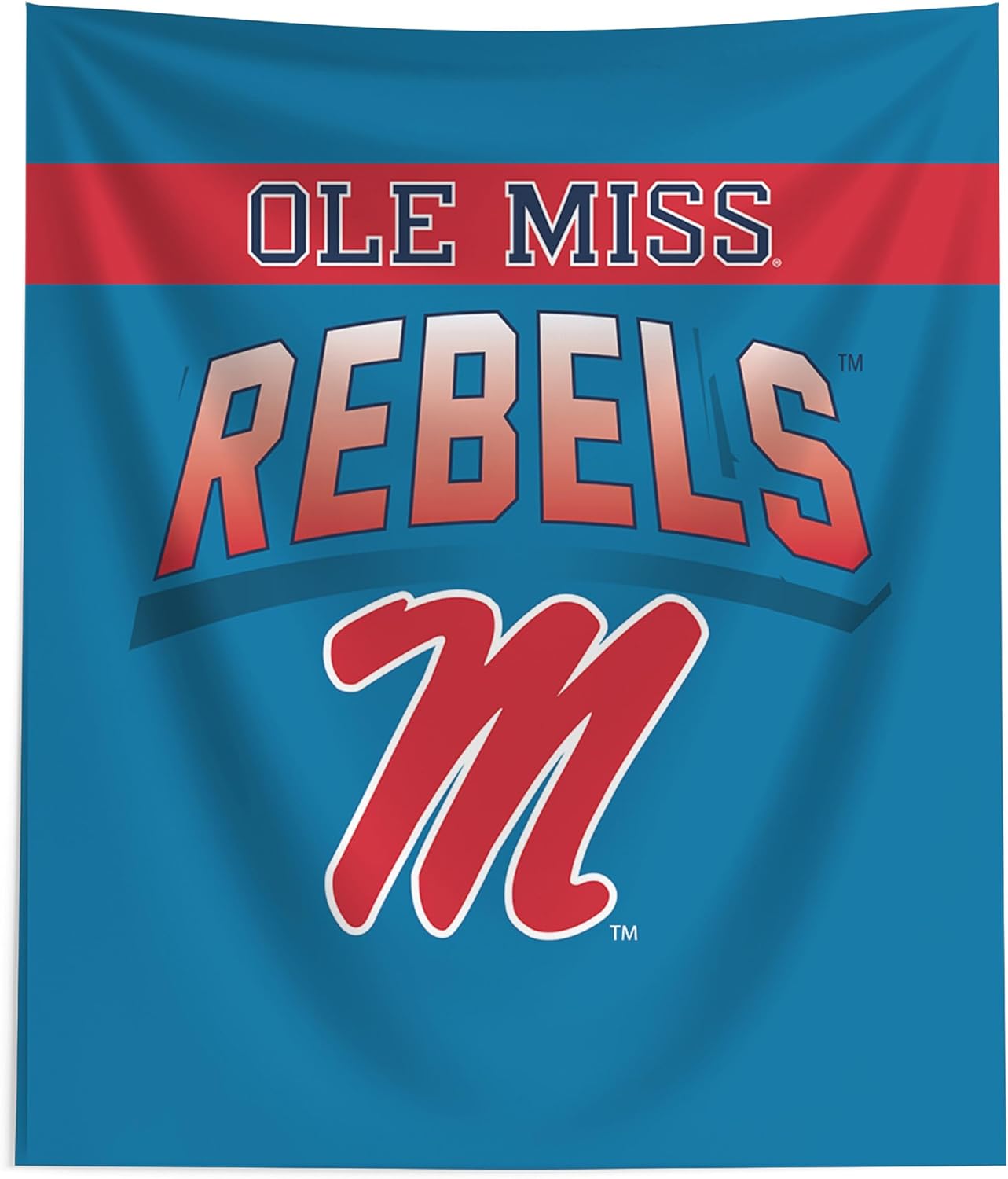 Bring game day energy to your walls with this officially licensed NCAA printed wall hanging tapestry. Designed to make a bold statement, it showcases detailed graphics in vibrant color on a textured woven surface that adds depth and visual dimension to your space. Crafted from lightweight polyester fabric, this tapestry hangs smoothly and is easy to display in bedrooms, offices, dorm rooms, or dedicated fan spaces. The detailed artwork delivers strong visual impact without overwhelming your space. Durable construction and reinforced edges help maintain its structure over time, while the easy care fabric supports convenient maintenance. Whether you are cheering from the stadium or updating your fan space at home, this wall hanging offers a versatile way to showcase your NCAA pride.