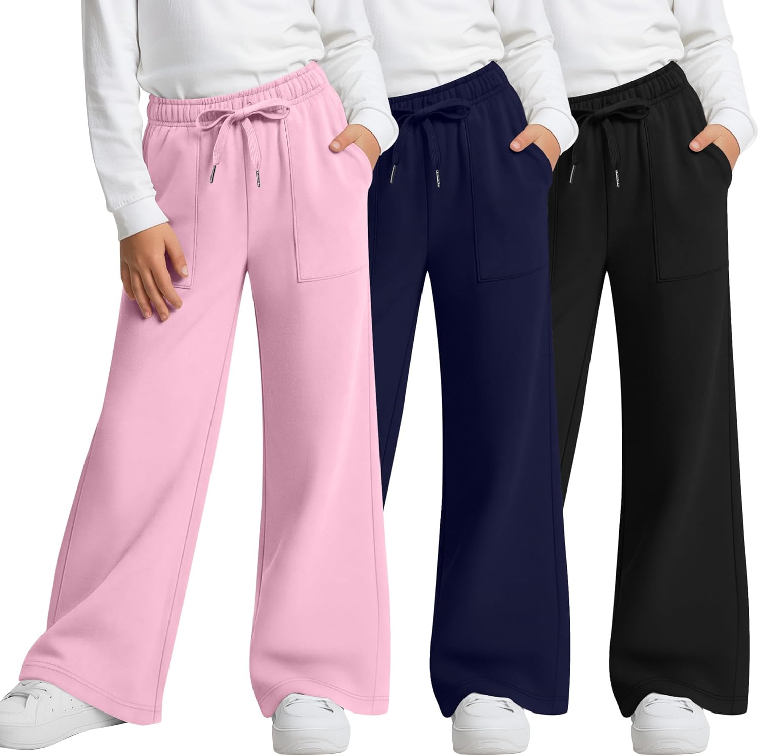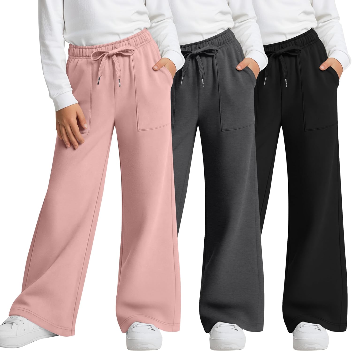 Features: Design: Modern straight-leg sweatpants with a relaxed fit and an adjustable drawstring waistband for a secure, customizable fit. The clean silhouette allows freedom of movement, while practical cargo pockets add utility and style. Details: Crafted from a soft, breathable blend of 60% polyester, 35% cotton, and 5% spandex, these pants offer lightweight comfort with gentle stretch. Durable construction stands up to active play, sports, and everyday wear. Easy to Wear and Style: The elastic waist ensures easy dressing and a comfortable fit. These versatile girls' pants pair effortlessly with tees, hoodies, or jackets for school, athletic activities, or casual outings. Occasions: Ideal for sports practice, playground fun, travel, or daily relaxation. Suitable for girls and teens, these sweatpants transition easily from athletic to casual settings. Easy Care and Sizing: Machine washable and quick-drying, girls' joggers sweatpants save time for busy families while maintaining softness, shape, and comfort wash after wash. Available in a range of sizes—please check the size chart to select your ideal fit. Material: 60% Polyester, 35% Cotton, 5% Spandex Quantity: 3 pieces Size: XS, S, M, L, XL, XXL Season: Spring, Summer, Fall, Winter Remarks: Manual measurement, please allow slight errors in size. Colors may vary slightly due to different screen displays