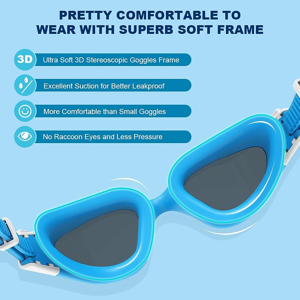 • This swim goggles have high-tech durable pc lens with uv protective layer, advanced anti-fog coating, provides better eyes protection and high definition panoramic views