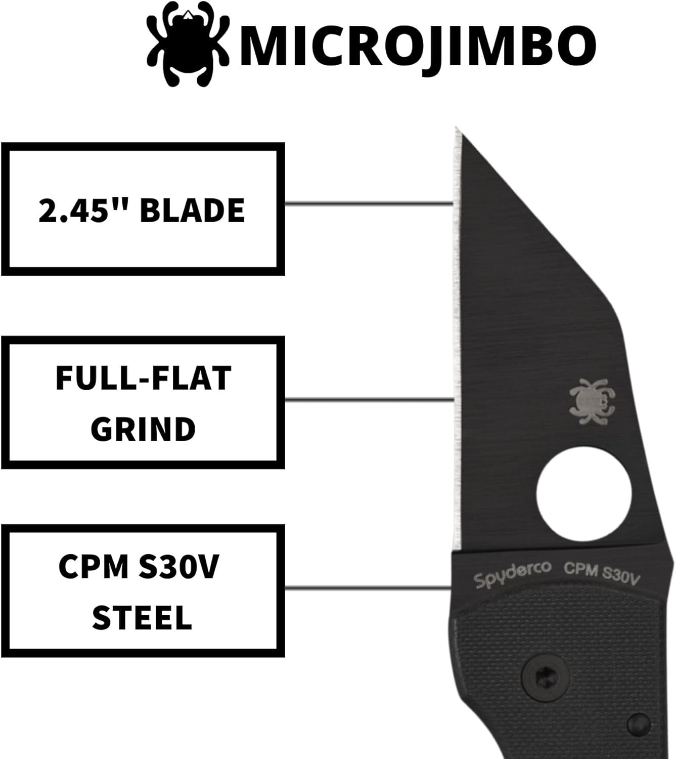 Michael Janich Design! This beautiful Spyderco Black G-10 Microjimbo Lockback is handcrafted in the U.S.A. and comes with a Limited Lifetime Manufacturer's Warranty. New and never been used or re-sharpened, this gorgeous knife is 3 7/8 inches long (folded/closed) and weighs approximately 3.0 ounces. This knife utilizes a 2 1/2" Locking Wharncliffe blade with a full-flat grind, plain edge, 3.7mm thickness and thumb hole. The blade material is CPM S30V Stainless Steel with Black DLC coating. The peel-ply-textured handle is Black G-10 with a reversible tip-up pocket clip and Compression Lock. If you are looking for a great knife to collect, carry or give as a gift, don't pass this one up!
