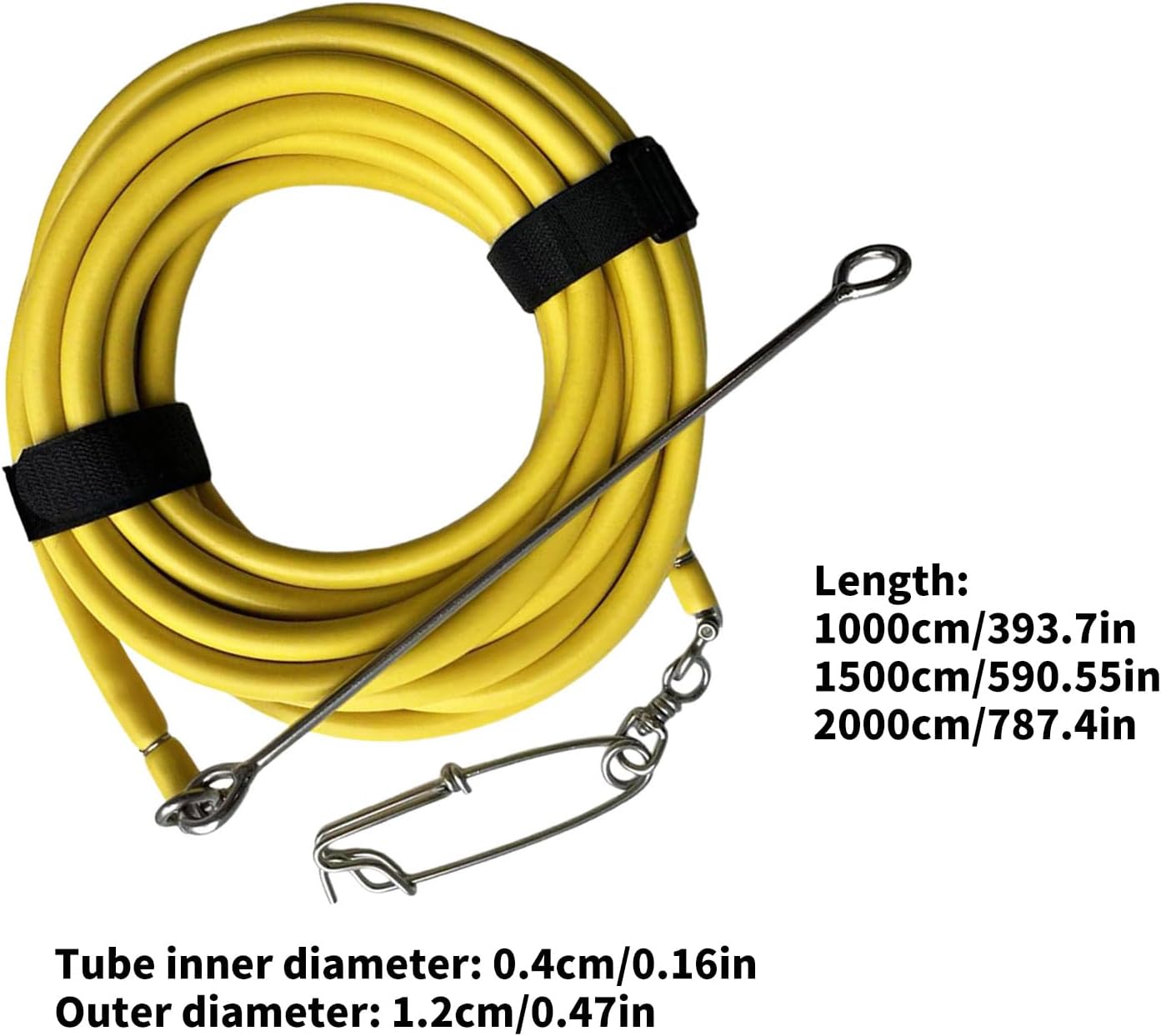 10/15/20m High Buoyancy Spearfishing Float Line Foam Rubber Tube with Stainless Steel Fittings for Underwater FishingFeatures:Enhanced buoyancy foam rubber tube maintains floatation even when punctured, outperforming traditional PVC lines that sink when damaged ideal for saltwater fishing float line applications requiring Features 4mm inner/12mm outer diameter with stainless steel sealed joints and 150KG braided cores, combining with tensile strength for dive fishing gear durability.Designed for professional anglers and spearfishing enthusiasts who demand puncture equipment capable of withstanding environments and strong currents.Perfect for sea bottom fishing, coastal areas, or fast moving tidal zones where floating line and abrasion resistance are critical for successful catches.The combination of closed cell foam rubber buoyancy technology and marine grade stainless steel components creates the fishing tool line for saltwater fishing accessories that prioritize and longevity over traditional PVC alternatives.Specifications:Component: foam rubber stainless steelSize: 10m/393.7in, 15m/590.55in, 20m/787.4inInner Diameter: 4mm/0.16in, Outer Diameter: 12mm/0.47inPackage Includes:1pc Spearfishing Float LineNote:Please allow 1-2cm errors due to manual measurement. Due to difference between different monitors, the picture may not reflect the item actual color.