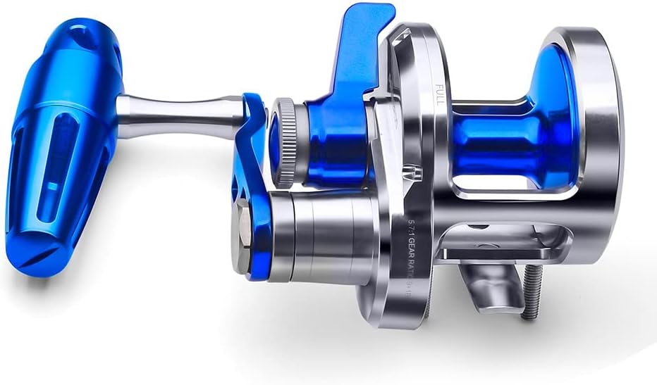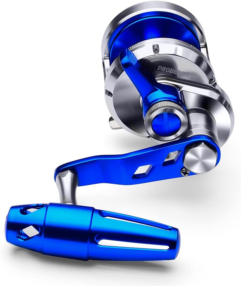 1.Thicker than the original model, the main body weight reduction thickening increases the overall strength. 2.The main seat plate is riveted with SUS304 stainless steel, it is much stronger and harder than the screw. (Original seat plate is easy to loosen). 3.The main body and cover are locked with SUS304 stainless steel thick screw and Teflon Paste, the thick screw is extra-stronger, and the Teflon Paste can prevent the looseness. (The original model is M2 screw with poor locking strength and easy to loose without Teflon Paste).4.One-Piece cold forged and machined of main cover and one-way bearing seat increased the strength and precision. 5.The wrench design is hide the crisp and loud sound structure, and the brake is adjusted to three gear positions FREE/STRIKE/FULL. 6.Replace the NMB Japan imported bearings which have been enlarged. (the original bearing is small and poor strength). 7.Changed from two ordinary 6-pin one-way bearings to 11-pin metal shrapnel long one-way bearings (static tension can be 46LB), which increases the tensile force value and strength of one-way force. 8.Increased reactionary ratchet to prevent one-way bearing failure. 9.Stainless steel easy-to-cut helical gear , helical tooth is high strength and small noise.high gear ratio choice from 5.7:110.The handle is change from screw to stainless steel rivet, it is strength and not easy loose. 11.The brake adjustment button is changed to the sound structure, which improves the adjustment precision and the sense of passage. 12.The small-line capacity reel is changed to the large-line capacity, the bigger capacity can be deep-water fishing. 13.Double brakes in a good design and processing precision make it more smooth.