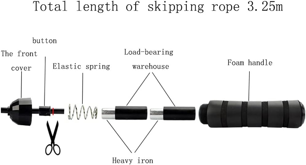 Product name: Kang Dongmei skipping ropeMaterial: PVCWeight: 500g for load-bearing models, 300g for ordinary modelsColour: BlackRope length: 300cmRope Thickness: Middle 8mmPurpose: fitness, sports, exam trainingSuitable for the crowd: no limit