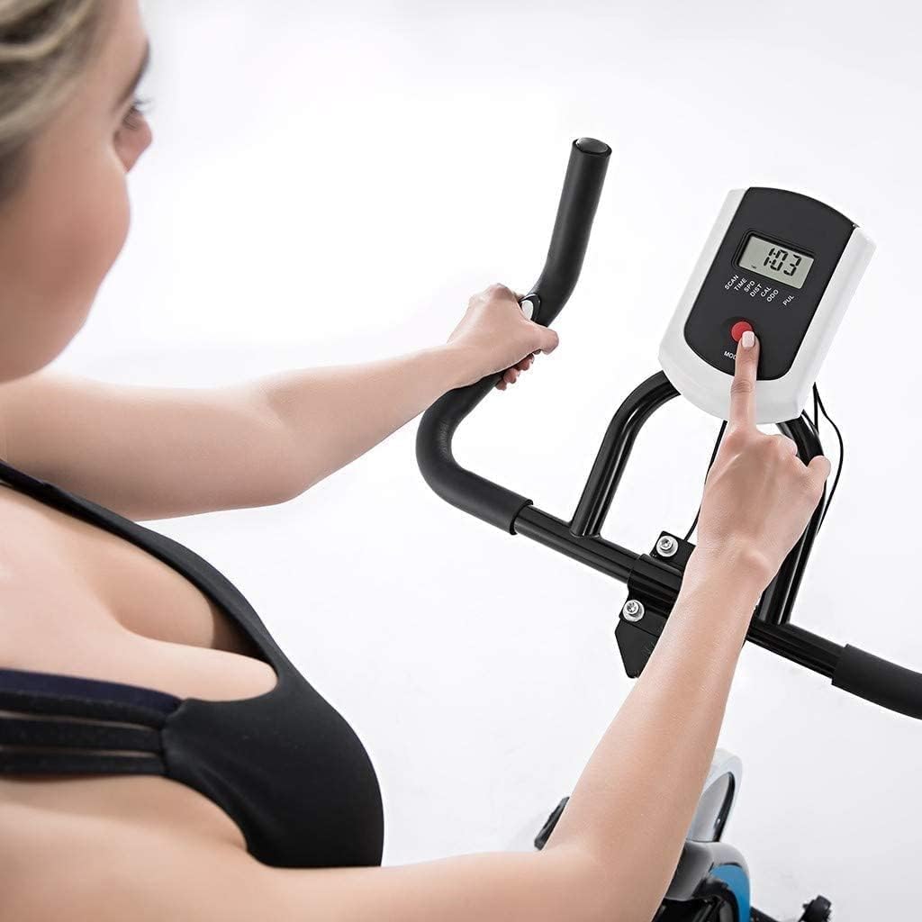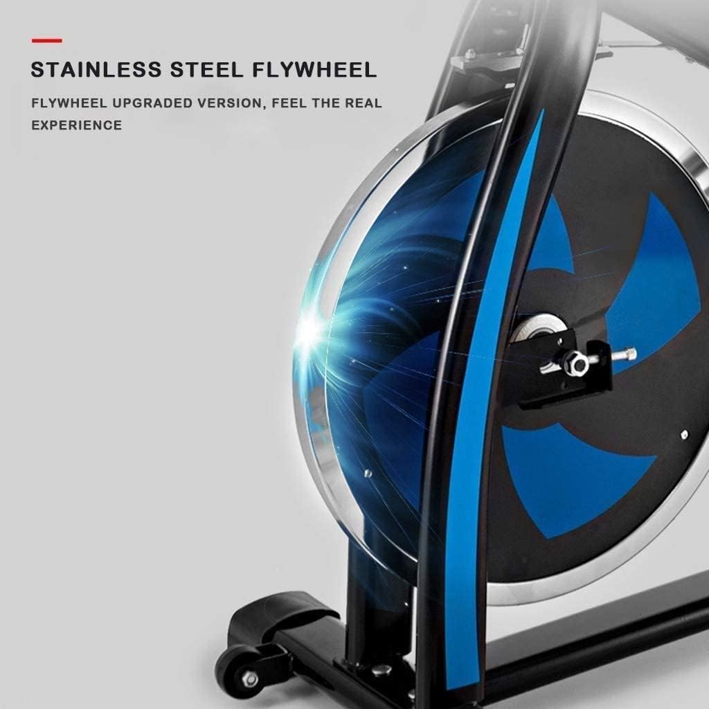 Description: Use a tension knob to switch exercise intensity Sporty saddle design ergonomic and can withstand long hours of exercise Easily track progress with the LED screen of an indoor cycling bike Proper foot placement is essential for any cycling workout Show your distance, heart rate, speed, duration and calories, you will be able to see your scores, thus maintaining motivation and pace The heavier the flywheel, the smoother the ride! Create more power in a longer period of time, keep your workouts up to date bottle holder keeps your favorite refreshing drink Built-in hub, just tilt and roll to use or take out for storage Parameter: Color: black and blue Material: PU saddle, aluminum pedal, steel e Power: self-generated Resistance: Knob Bottle cage: yes Adjustable handle/seat: yes LED display: distance, heart rate, speed, duration, calories Maximum load capacity: 440lbs / 200kg Flywheel weight: 22lbs / 10kg Adjustable height: 29''-35''; adjustable height back and forth (adjustable saddle): 29.5''-31.5'' Need to assemble: yes Package Contain: 1x indoor stationary exercise bike 1x hardware set 1x manual wish you a happy life! please rest assured to buy,if you have any questions, please feel free to contact us