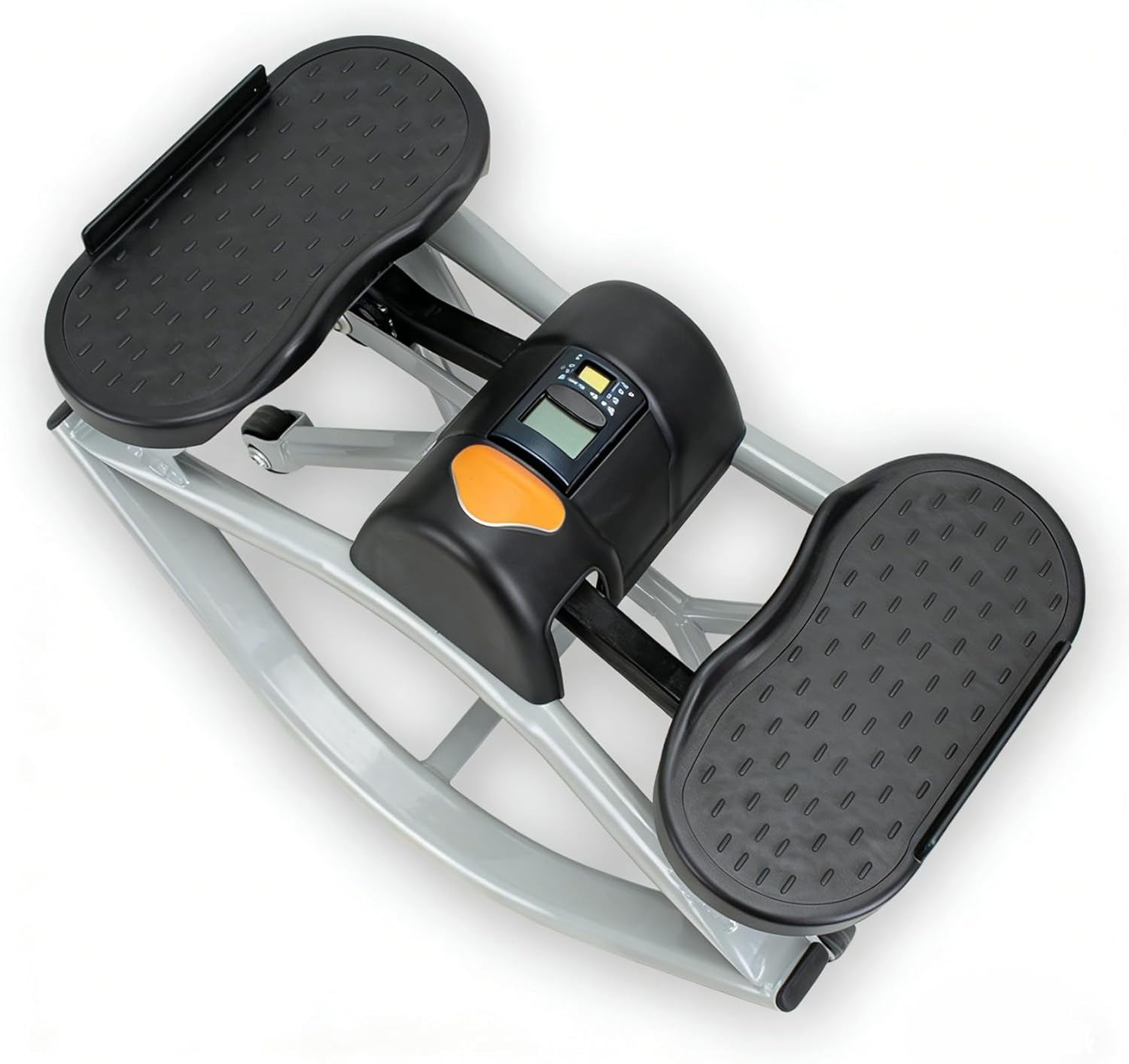 Fitness Stepper This lateral rocking steppers delivers a low-impact, full-body home workout ideal for daily exercise. Its side-to-side rocking motion eases pressure on knees and joints, making it gentle yet effective for users of all fitness levels, from beginners to seniors. Combining cardio and strength training, it targets legs, glutes, abs and core, while the included resistance bands engage your chest, back and shoulders to tone your entire body efficiently. The built-in digital monitor tracks real-time workout data including time, step count, calories burned and steps per minute, helping you stay motivated and monitor progress. Designed for convenience, it arrives fully assembled and operates quietly, so it won’t disturb others at home. Its compact size and built-in wheels ensure easy movement and storage, perfect for apartments, dorms and offices. Built with a heavy-duty steel frame supporting up to 250LBS, this stepper features anti-slip strips and a included anti-slip mat for enhanced stability and floor protection. Lightweight and portable, it’s a practical, space-saving fitness solution for anyone looking to stay active indoors.Home Workout Machine
