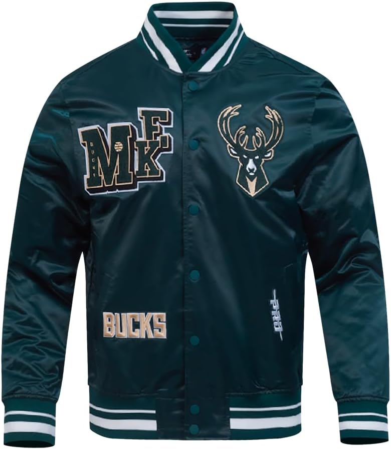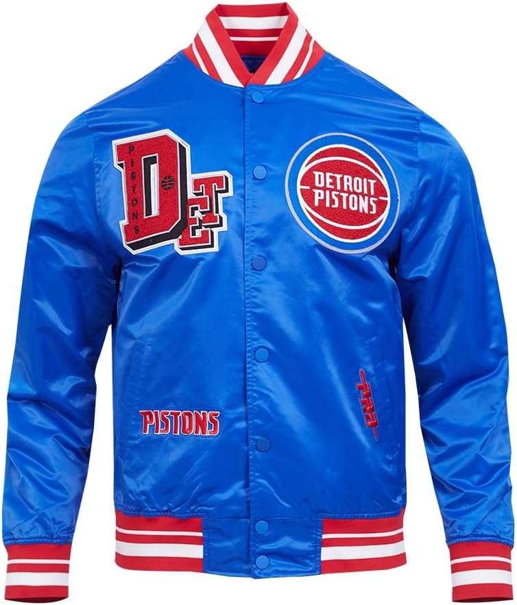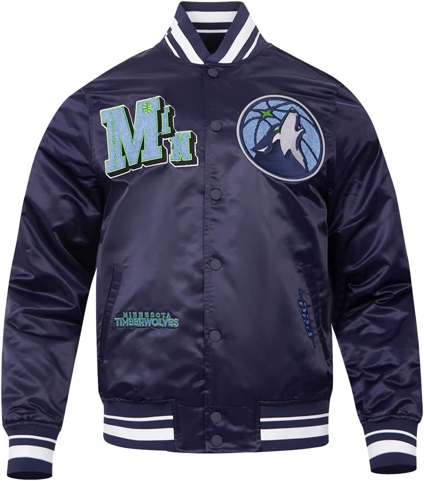 Celebrate your favorite NBA team in style with our Mens NBA Best Of Satin Jacket. This premium satin jacket features iconic team patches and intricate embroidery for a bold and versatile look. Stay comfortable and stylish with striped ribbed details and a secure snap closure. Show your team pride with every wear. Officially Licensed Merchandise.