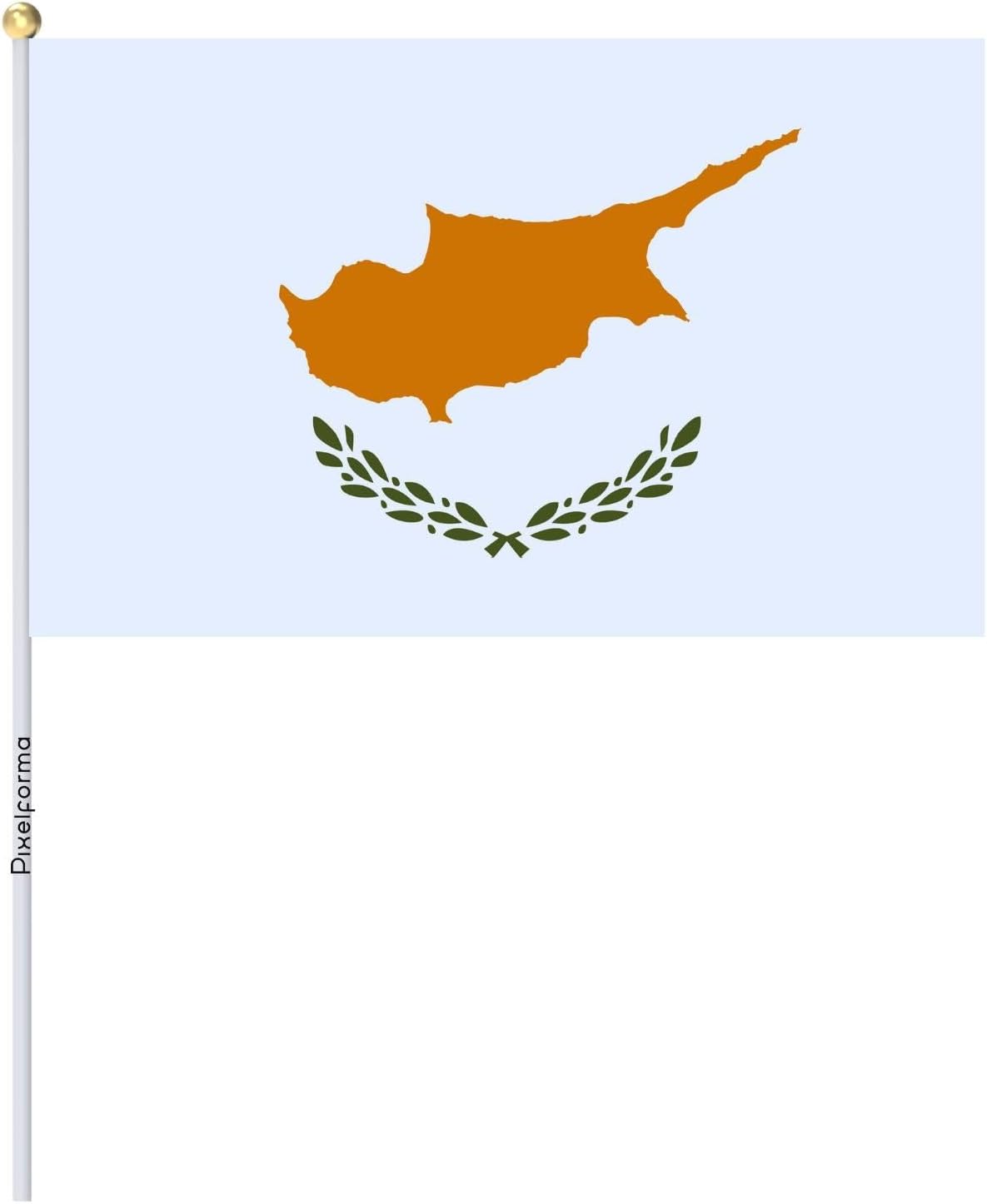 VARIOUS SIZES: Choose from our three sizes available to find the one that best suits your use. We offer flags of 14x21cm, 20x30cm and 30x45cm, offering a range of options to suit your preferences. Polyester Material The flags are made of high quality polyester, which makes them durable, weather resistant and suitable for outdoor use. The polyester also ensures a sharp and vibrant colour print. SUITABLE QUANTITY: We offer two quantity options to meet your specific needs. Choose between a pack of 100 pieces or a pack of 50 pieces, depending on the event or intended use. Versatility of use: Whether to show your support at a sporting event, to decorate a party, to mark a special occasion or simply to display your patriotism, these mini flags are versatile and can be used in a variety of ways. Ease of display: Each flag is equipped with a sturdy plastic pole that makes it easy to hold them and place them wherever you want. They are lightweight and easy to handle. Bring a splash of colour and festive spirit with our set of mini polyester flags. Order now and show your pride in a compact and stylish way! Flag of Cyprus