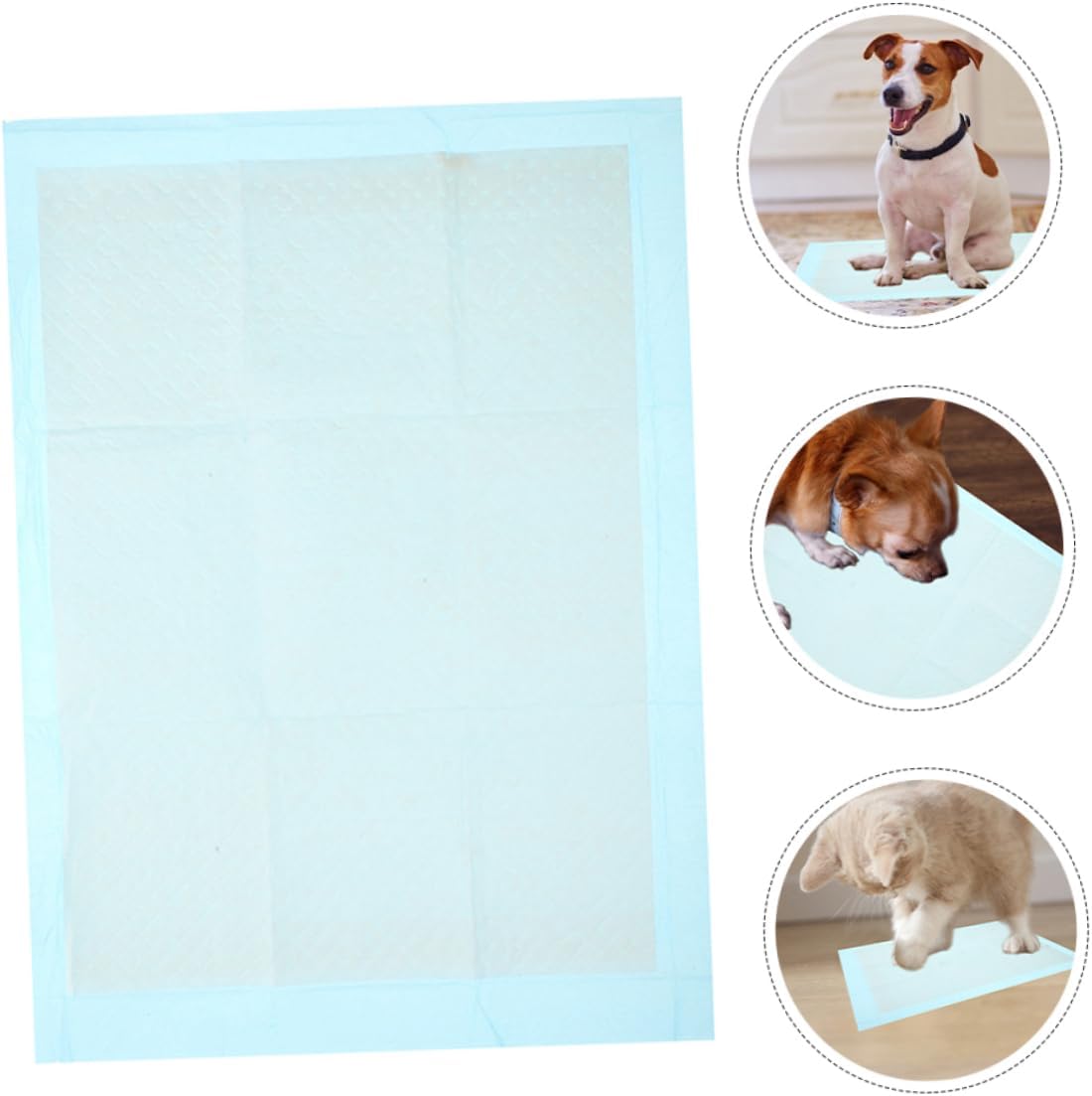 Package Include disposable pet potty pads Features -Color:Sky-blue dog potty pads -Size:45.00X33.00X0.20cm/17.68X12.97X0.08in large pee pads for dogs -Material:Non-woven fabrics pee pads for cats -With single-use convenience, these pads make cleanup a breeze, saving you time and effort potty pads -Ideal for a variety of pet care needs, these pads are Ideal for and everyday use dog accessories girl -These pads are designed to quickly absorb pet urine, ensuring your home remains dry and clean at all times dog poop pads -The large dimensions of these pads provide ample space for dogs and puppies to use comfortably large puppy pads -Engineered to resist leaks, these pads your floors and furniture unwanted rabbit pee padsGoods Informationlitter pads Make potty your dogs and puppies a experience with our super absorbent disposable pee pads.large dog pee pads Simply place the pad in your pet's potty area and guide them to use it.cat litter pads Each pad is designed to in and prevent leaks, ensuring your floors stay clean