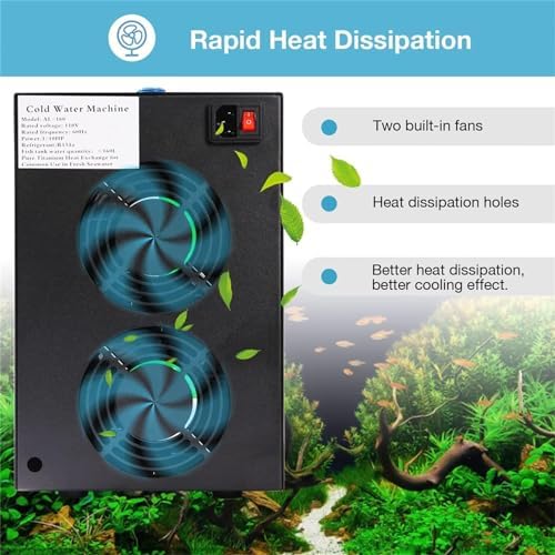 • Effortless Temperature Control: This Aquarium Water Chiller ensures optimal water conditions for your aquatic habitat. Featuring a high-quality Pure Titanium Heat Exchanger, it is designed for all Freshwater Aquariums, providing long-lasting performance and energy efficiency. Maintain a stable environment for your fish with ease.