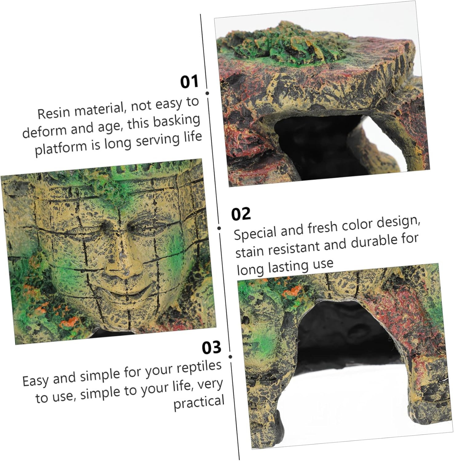 Package List 1 x Terrarium Decor Features -Color:Multi decorative reptile decor -Material:Resin terrarium decor -Size:20.00X14.00X14.00cm/7.86X5.50X5.50in reptile decor -Reptile Decor is small and lightweight, does not take up of space, and is easy to carry natural reptile decor. -Multi-functional and versatile, can be used as a hide , a decoration, a rest stand, etc terrarium reptile cave. -Give your pet a hiding place and make your tank more alive. With simple structure, Reptile Decor is easy to install and remove, time-saving and effortless vivid terrarium decor. -Suitable for most animals, such as water turtles, frogs, lizards, tortoises, and so on household terrarium decor. -It comes with lifelike details, which helps you create interesting landscape natural reptile cave.Goods Informationreptile accessories A great decoration to your reptiles feeding box.realistic reptile cave This Reptiles Pet Hiding Cave is made of , Reptile Decor is and which also can brighten up your landscape.terrarium reptile cave It can provide a environment for your pet reptiles to rest and hide, adding fun for your pets