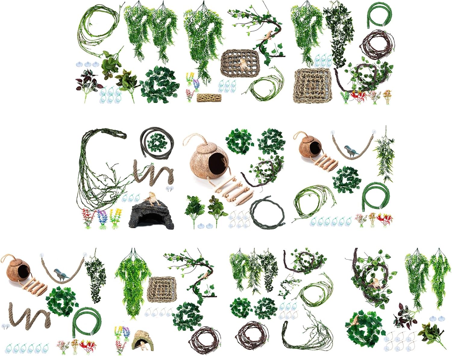 Artificial Reptiles Plant For Climbing Hideouts Terrarium Jungle Bendable Vine Amphibian Habitat OrnamentsFeatures:Decorate your Reptiles terrarium with our artificial Vine, create a realistic tic landscape and comfort for your pet.Artificial Vine Plant ,makes your habitat more alive, suitable for reptiles, beardeddragon, iguanas, lizards, snake tanks for Reptiles enthusiasts, pet store owners... this product caters to different levels of decorative requirements, ensuring satisfaction.Suitable for most types of Reptiles enclosures, terrariums, and indoor plant decorations, it help create a natural tanks and add visual appeal to any setting.This versatile decoration transforms any space into alive environment, enhancing the overall for both you and your pet.Specifications:Component: Simulation of Green Plant, Wood, Suction Cup Diameter: Approx.4cm/1.57inchType: 10 OptionQuantity: 1 SetPackage Includes:1 Set Reptiles Terrarium Plant DecorationNote:1.Please allow 1-2cm errors due to manual measurement, note that you donot mind before order. 2.Due to the differences between different monitors, the picture may not reflect the actual color.