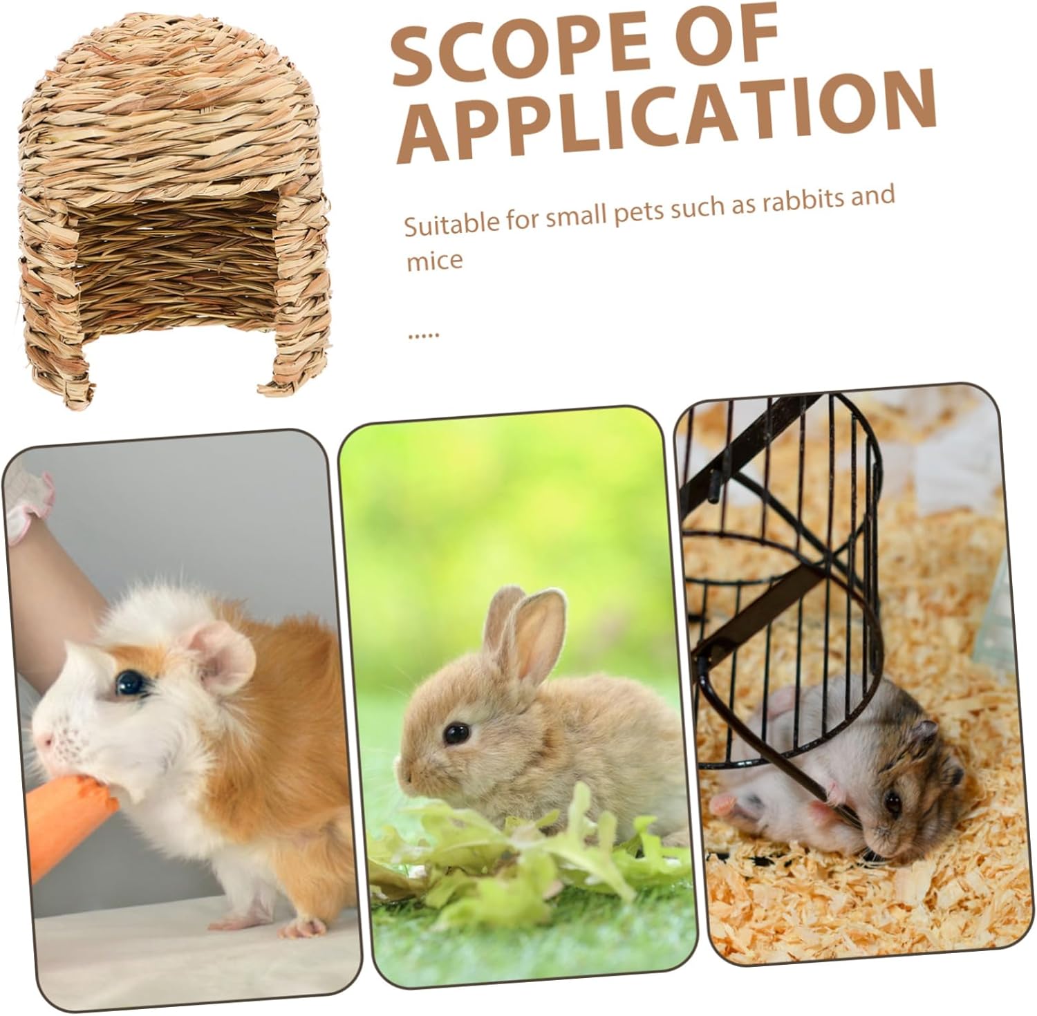 Package Include 1 x Grass Bunny House Characteristics -Suitable for various pets: ideal for rabbits, guinea pigs, and other small pets, providing and private space for them to relax and hide bunny for rabbits indoor -Multifunctional design: can be used as a grass house, grass nest, or hideout, catering to the diverse needs of your pets and enhancing their living experience bunny castle -Size:29.00X27.50X25.00cm/11.40X10.81X9.82in nest -Comfort and safety: provides a warm and cozy resting and sleeping space for your pets, ensuring they feel secure and comfortable at all times silicone bird food bowl -Material:Grass rabbit house bunny castle -Color:Multi rabbit cage indoor -Portable: easy to carry and suitable for both indoor and outdoor use, offering flexibility and convenience for pet owners small rabbit hutch -Natural material: made from natural woven grass, it is safe for pets, their health and wellbeing rabbit houseGoods Descriptiongrass hut for rabbit The foldable design allows for and transport, making it ideal for both indoor and outdoor use.bunny castle for rabbits Our rabbit grass house is the great hideout for your furry friend.rabbit hutch outdoor Your rabbit will love the comfort and security this grass house offers.rabbit beds Made from natural materials, it provides and cozy environment for rabbits to