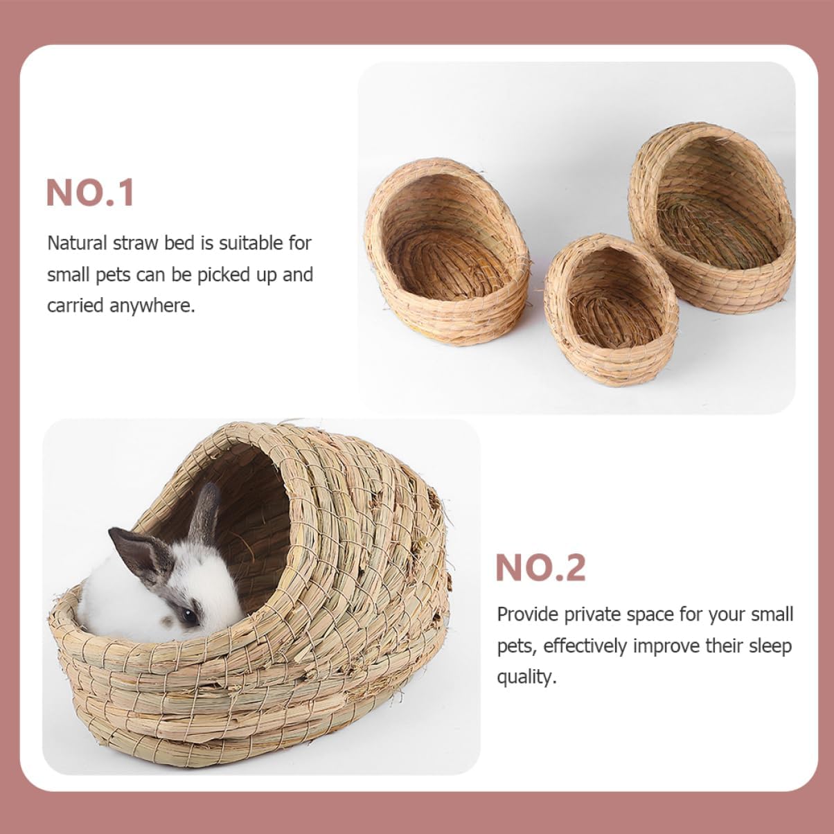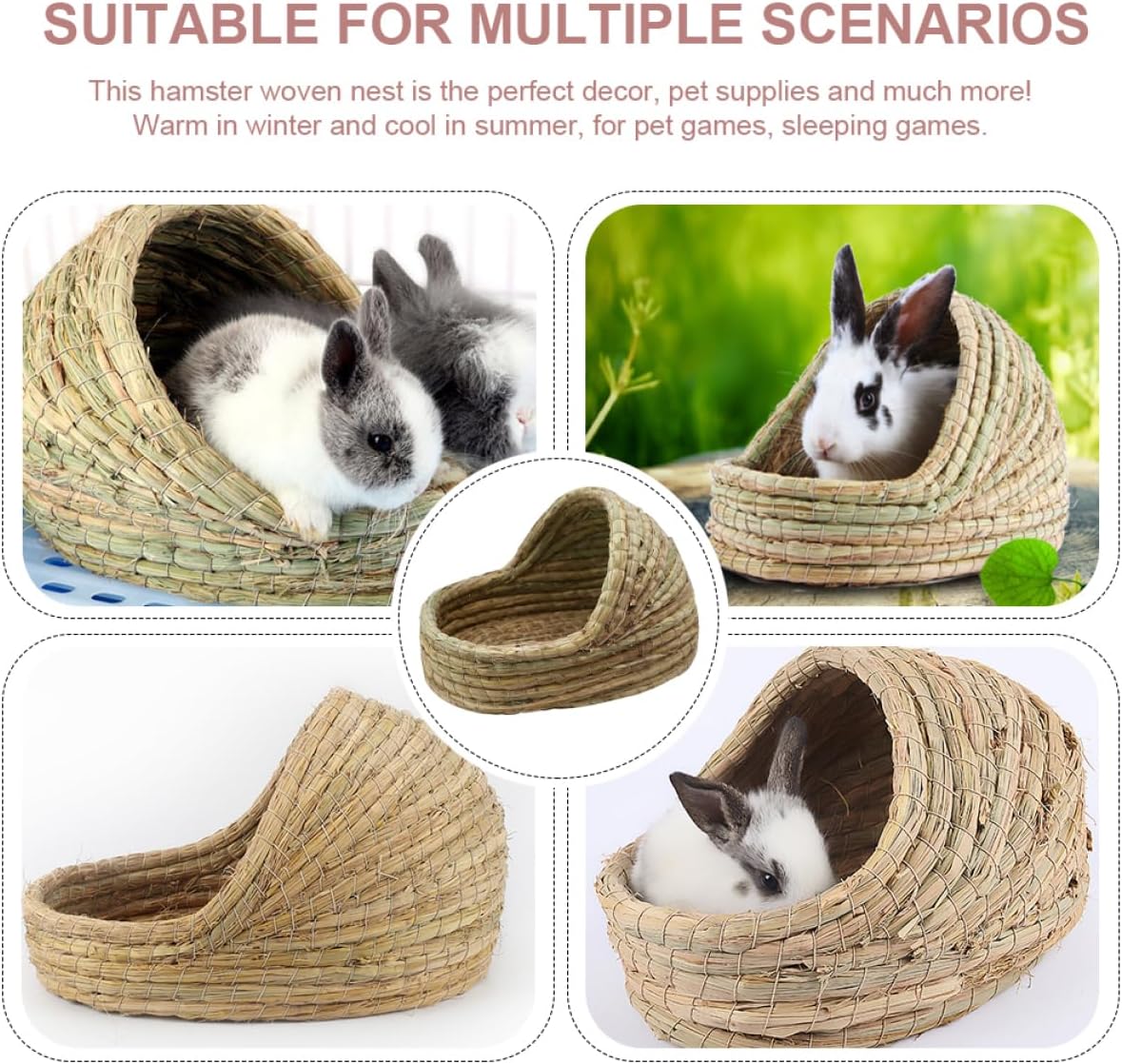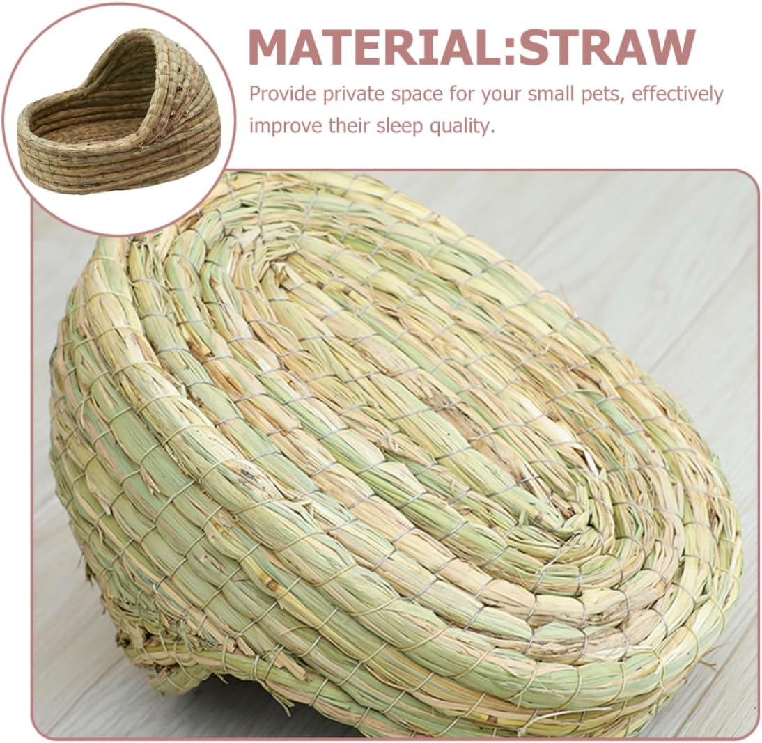 Package Include 1 x House Features -Material:Straw guinea pig grass bed - Size: 35.00X25.00X23.00cm/13.76X9.82X9.04in rabbit hut - guinea pig accessories -This cozy little nest, provides the warm, sheltered environment for them dwarf cage. -It ensures your small pets have sleep and comfortable daily activities. This nest is for small pets to bite, help soothe their emotions bunny grass house. -Adopt natural straw material, comfortable and , make it more suitable for small pets guinea pig houses -Naturally woven grass bed has its own organic grass scent that makes pets feel relaxed and helps prevent boredom, just as they would in their own natural home house. -This pet house can provide your pet a sleeping environment while offer enough space for their activities grass house.Goods Informationdwarf This nest give your lovely pet a comfortable place to rest and play. houses and hideouts Multi-purpose animal house, eating, drinking, sleeping, sports and many other uses, make reasonable use of space. hideout This woven nest is suitable for hamster, guinea-pig, rabbits and other similar pets