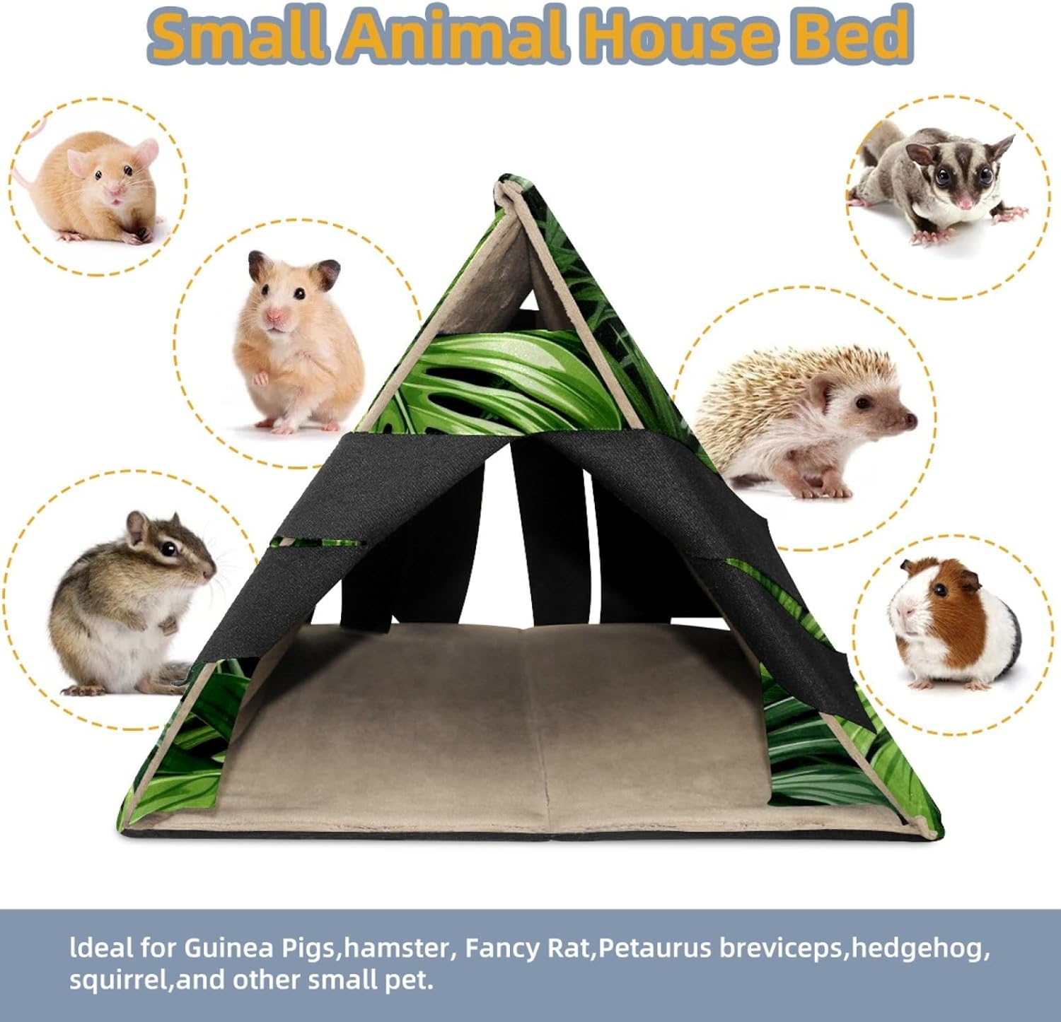 This "Little Hamster Home" is a series suitable for small pets such as hamsters, guinea pigs, rabbits, ferrets, mice, hedgehogs, and chinchillas. It is made of high-quality short velvet fabric and provides a private, warm, and comfortable hiding place, allowing your cute little animals to feel safe. Your baby can play, rest, hide, sleep, or engage in other activities in this safe haven, while also being a warm home. The size of 'Little Hamster House' is 10.2 inches long, 12 inches wide, and 8.5 inches high. The bottom is a foldable PP board, so when not in use, the hamster nest can be folded up without taking up space. By covering it with a layer of blankets, this cabin can become a comfortable hiding place. This small animal bed is made of high-quality soft short velvet fabric, with a sturdy structure that remains stable on the ground and will not collapse on its own. The ultra soft fabric makes your baby feel comfortable and warm in their own cabin. Plush curtains provide a private, warm, and comfortable resting place for your pets, allowing them to feel secure. Specially designed for guinea pigs, hedgehogs, golden bears, sugar kangaroos, hamsters, squirrels, chinchillas, small rabbits, flying dragons, and other small animals. When accidents cannot be avoided, there is no need to worry! This guinea pig bed can be hand washed and machine washed, suitable for air drying.