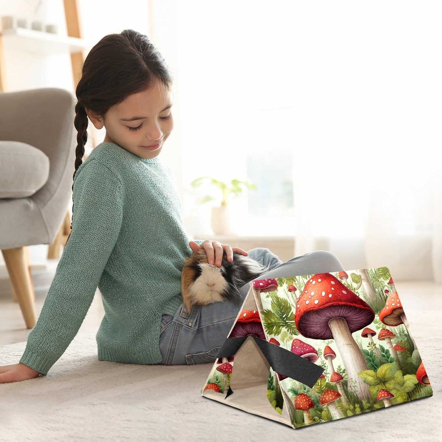 This "Little Hamster Home" is a series suitable for small pets such as hamsters, guinea pigs, rabbits, ferrets, mice, hedgehogs, and chinchillas. It is made of high-quality short velvet fabric and provides a private, warm, and comfortable hiding place, allowing your cute little animals to feel safe. Your baby can play, rest, hide, sleep, or engage in other activities in this safe haven, while also being a warm home. The size of 'Little Hamster House' is 10.2 inches long, 12 inches wide, and 8.5 inches high. The bottom is a foldable PP board, so when not in use, the hamster nest can be folded up without taking up space. By covering it with a layer of blankets, this cabin can become a comfortable hiding place. This small animal bed is made of high-quality soft short velvet fabric, with a sturdy structure that remains stable on the ground and will not collapse on its own. The ultra soft fabric makes your baby feel comfortable and warm in their own cabin. Plush curtains provide a private, warm, and comfortable resting place for your pets, allowing them to feel secure. Specially designed for guinea pigs, hedgehogs, golden bears, sugar kangaroos, hamsters, squirrels, chinchillas, small rabbits, flying dragons, and other small animals. When accidents cannot be avoided, there is no need to worry! This guinea pig bed can be hand washed and machine washed, suitable for air drying.