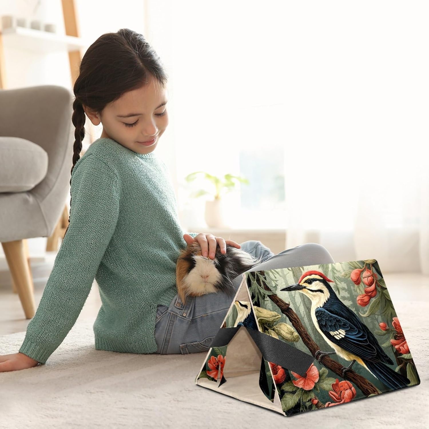 This "Little Hamster Home" is a series suitable for small pets such as hamsters, guinea pigs, rabbits, ferrets, mice, hedgehogs, and chinchillas. It is made of high-quality short velvet fabric and provides a private, warm, and comfortable hiding place, allowing your cute little animals to feel safe. Your baby can play, rest, hide, sleep, or engage in other activities in this safe haven, while also being a warm home. The size of 'Little Hamster House' is 10.2 inches long, 12 inches wide, and 8.5 inches high. The bottom is a foldable PP board, so when not in use, the hamster nest can be folded up without taking up space. By covering it with a layer of blankets, this cabin can become a comfortable hiding place. This small animal bed is made of high-quality soft short velvet fabric, with a sturdy structure that remains stable on the ground and will not collapse on its own. The ultra soft fabric makes your baby feel comfortable and warm in their own cabin. Plush curtains provide a private, warm, and comfortable resting place for your pets, allowing them to feel secure. Specially designed for guinea pigs, hedgehogs, golden bears, sugar kangaroos, hamsters, squirrels, chinchillas, small rabbits, flying dragons, and other small animals. When accidents cannot be avoided, there is no need to worry! This guinea pig bed can be hand washed and machine washed, suitable for air drying.