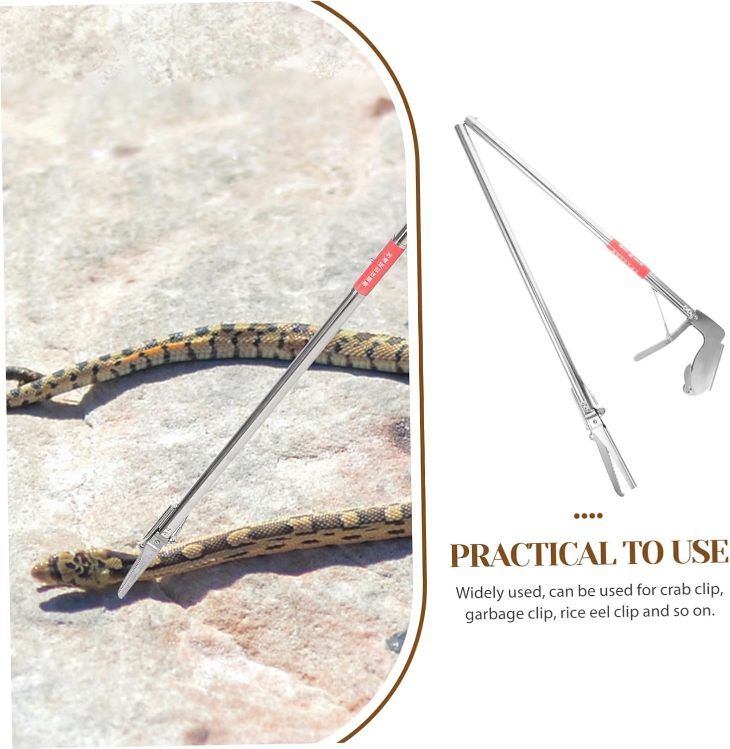 Package Include 1 x Snake Clip Characteristics -Material:Stainless steel Snake Trap Clip -Color:Silver Snake Stick Catcher -Size:122.00X13.00X1.50cm/47.95X5.11X0.59in Snake Clip Tool - You will have a use experience because of the workmanship of this snake clamp Snake Catcher. - Stainless steel material, flexibility and excellent durability, easy to use, for service life Snake Catch Tool. - Widely used, can be used for crab clip, garbage clip, rice eel clip and so on. Very simple and easy to operate, for you Snake Grabber Tools. - Easy to clean and store, and you can use for many times, and convenient Snake Catcher Clips. - Lightweight and portable, sturdy and , folding design, not easy to damage, and great Snake Clip.Goods DescriptionStainless Steel Snake Catcher Clip Are you still looking for a and multipurpose snake clamp tool? If you are, then you can consider our clip, which selected stainless steel material, lightweight and not easy to crack, and wear-resistant, reusable and easy to clean.Folding Snake Catch Clamp A and catching snake clip tool