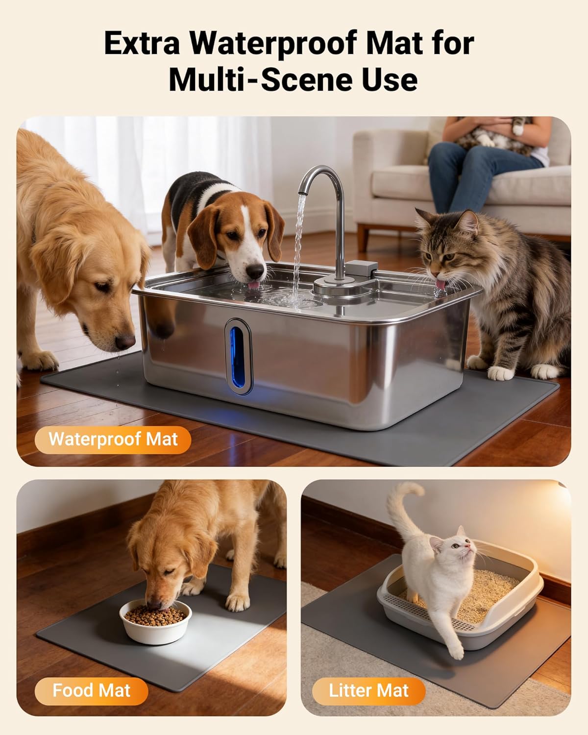 | Included Components | 1 X 15L Stainless Steel Dog Water Fountain, 1 X Pet Feeding Mat, 3 X Replacement Filters |