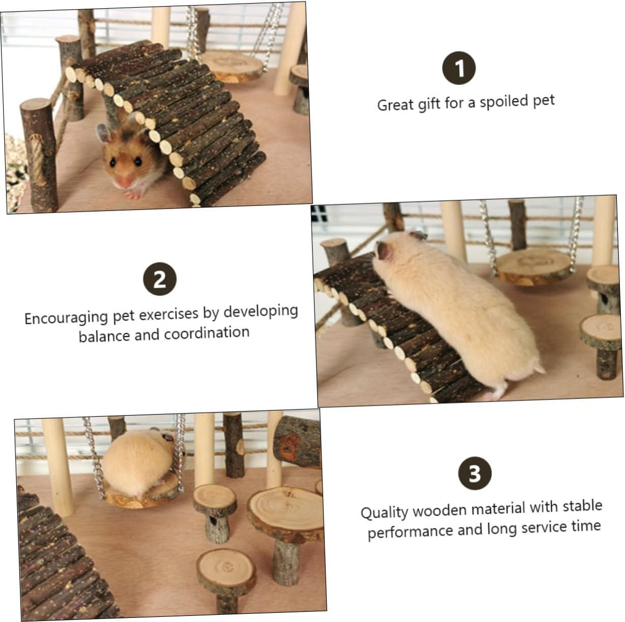 Package List 1 x toy Characteristics -Size: About 36.00X26.00X17.00cm/14.15X10.22X6 bunny. -Material: Wood wooden toy -Color: Assorted color pig - Made of wooden material for and use ferret. - It can train hamster for a long time and cultivate their abilities cages. - Suitable for hamsters, gerbils, , , parrots and other small animals small ladder. - It is the toy for your little hamster playing, adventuring and desiring to explore food. - A great ladder toy that promotes fun and exercise. Use up the hamster's excess energy ball.Goods Descriptionrabbit swing for cage An ladder designed for your little hamster to play.climbing toys With ladder design, it can be a nice pet ladder, and it can exercise your pet hamster foot force, claw force and so on.chew toys This item is made of environment-friendly wooden material for to use