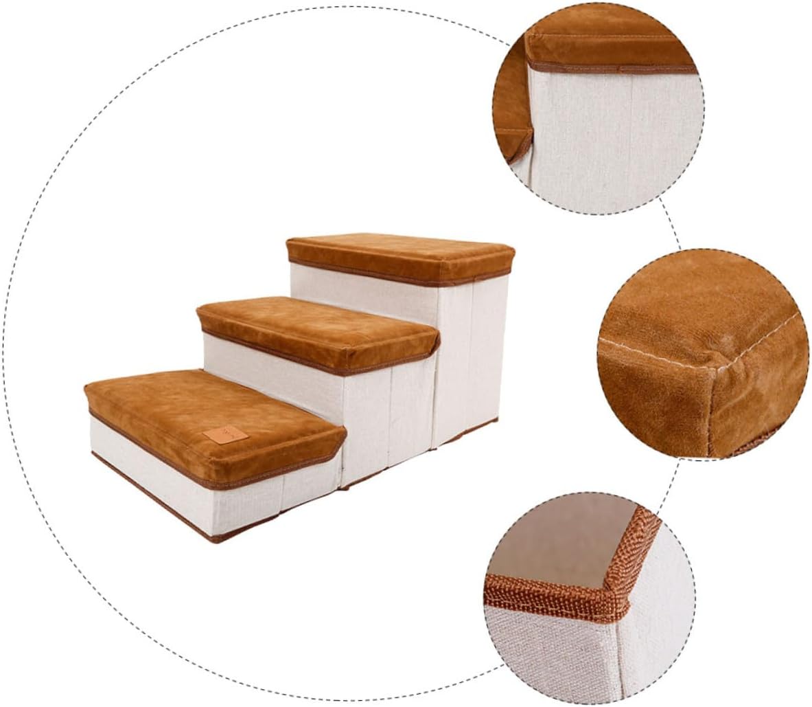 Package Include 1 x pet stair Features - Size: About 60.00X35.00X30.00cm/23.58X13.76X11.79in - Color: Brown - Material: Lint and cotton cloth -Product Info:Dog stairs - The pet step features style, so any home style can be perfectly integrated Puppy Stair. - It can be folded when not in use, so it does not take up space Stair for Puppies. - At the same time, it can be a storage case Dog Ladder. - material with stable performance and . - The pet stair features the simple installation and convenient storage Pet Ladder.Goods InformationPuppy Stair Removable and washable, an anti-slip bottom makes these doggies stairs for small dogs very sturdy, recommended for smaller dogs, cats or puppies.Dog Ladder And its maximum load-bearing is 25KG.Pet Supplies The pet stairs can help puppies and small dogs to freely get on and off the bed, sofa, etc