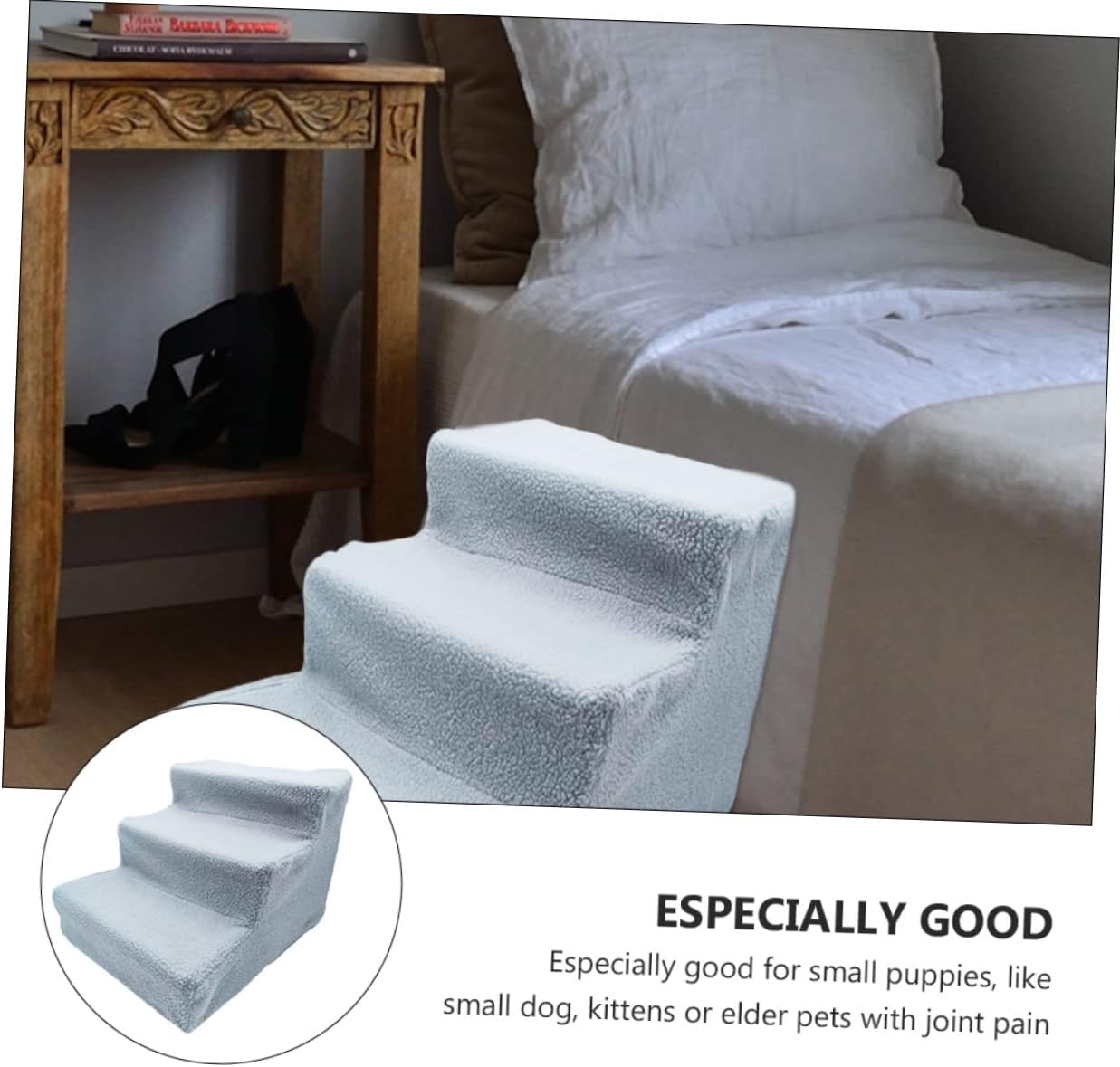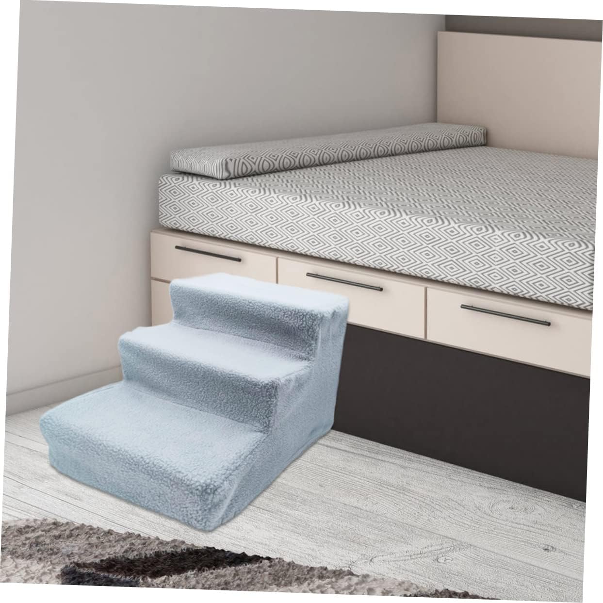 Package List 1 x pet ladder Features -Size: 45.00X35.00X30.00cm/17.68X13.76X11.79in cat sofa ladder. -Material: Plastic, cashmere puppy ladder -Color: Grey pet climb ladder - The pet stair is is lightweight and portable which is easy to store and transport. You can carry it when travelling with your lovely dogs dog climb stairs. - Small dog stairs can save space to store it in closet, car or under bed cat stairs. - A accessory for helping your or reach that high bed or couch cat steps. - The pet step adds a sturdy structure to get a sturdy staircase for dogs puppy stairs. - Use the steps to help your friend climb up on the sofa or bed all by themselves to time together dog stairs.Goods Descriptioncat steps Soft and comfortable, flexible, prevent pet from being injured.cat stairs Our stairs are the accessory to help pets reach a high bed or couch! The pet ladder is made with comfortable and durable material to pressure on paws and joints