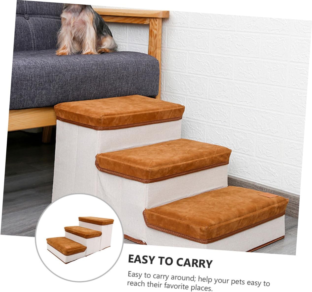 Package Include 1 x pet stair Characteristics - Material: Lint and cotton cloth Dog Ladder - Color: Brown Pet Stair - Size: About 60.00X35.00X30.00cm/23.58X13.76X11.79in Stair for Puppies - Made from , to use Pet Supplies. - A nice home or pet shop pet supply Dog Stair. - Perfect for small and medium size dogs, and cats Pet Ladder. - Easy to carry around; help your pets easy to reach their favorite places Storage Case Stair. - Streamlined design is perfect for pet; and it is easy to assembly without tools Pet Playing Stair.Goods InformationPet Stair You can place it anywhere you like, Cat and dog will like this stair.Foldable Pet Stair Suitable for home, pet shop.Dog Ladder This pet stair is made by , , and .Pet Supplies Pet will be easy to reach their favorite places, jump and play