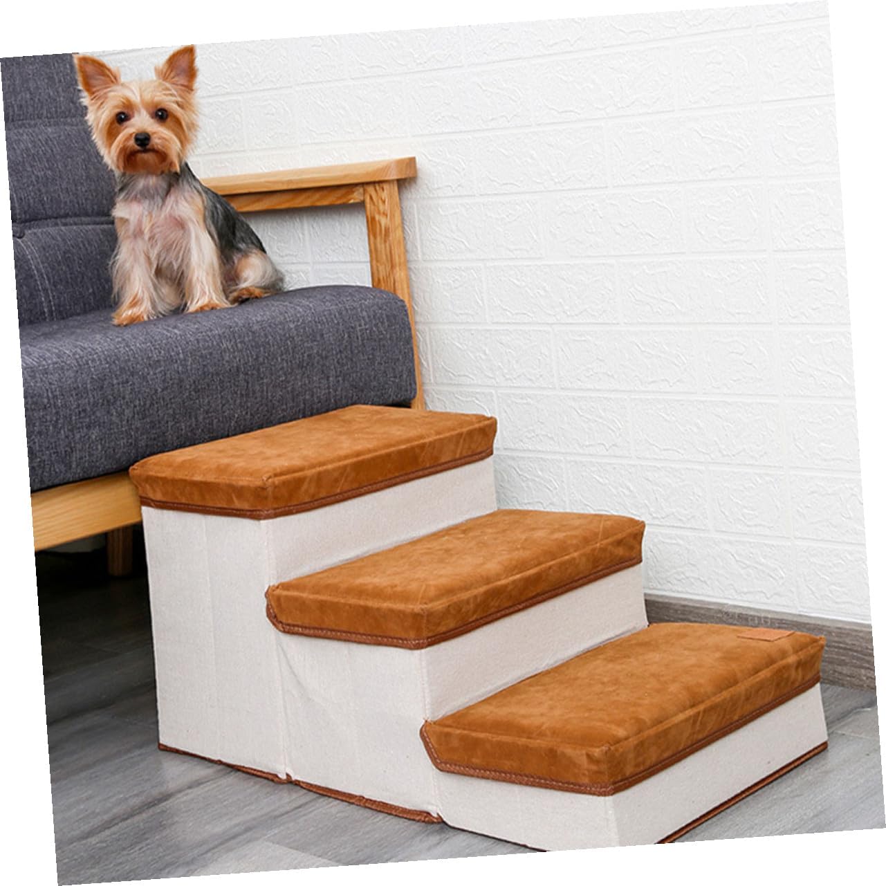Package Include 1 x pet stair Features - Size: About 60.00X35.00X30.00cm/23.58X13.76X11.79in -Product Info:Dog stairs - Material: Lint and cotton cloth - Color: Brown - material with stable performance and . - At the same time, it can be a storage case Pet Playing Stair. - The pet step features style, so any home style can be perfectly integrated Pet Supplies. - The pet stair features the simple installation and convenient storage Pet Ladder. - It can be folded when not in use, so it does not take up space Storage Case Stair.Goods DescriptionStair for Puppies The pet stairs can help puppies and small dogs to freely get on and off the bed, sofa, etc.Pet Stair Removable and washable, an anti-slip bottom makes these doggies stairs for small dogs very sturdy, recommended for smaller dogs, cats or puppies.Puppy Stair And its maximum load-bearing is 25KG