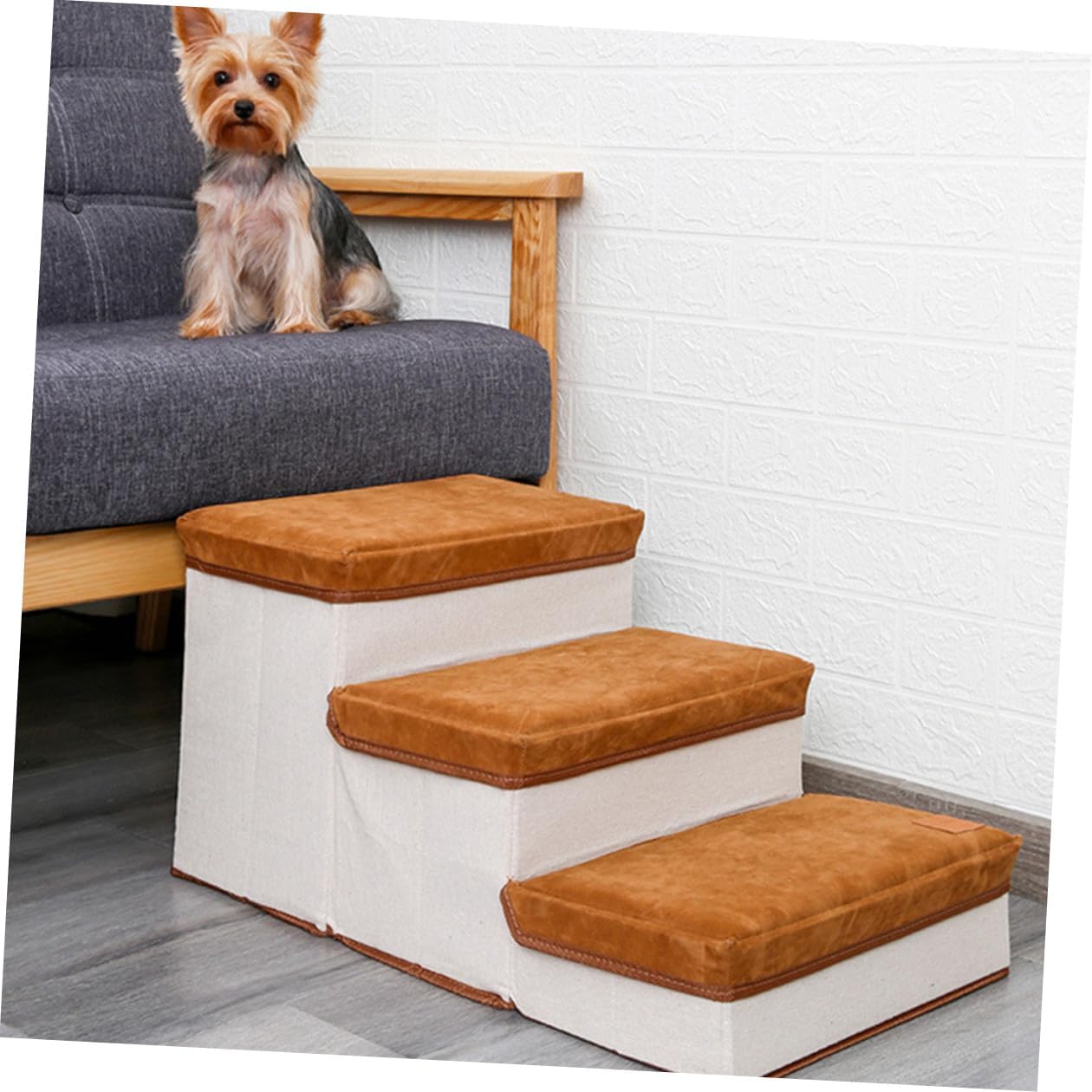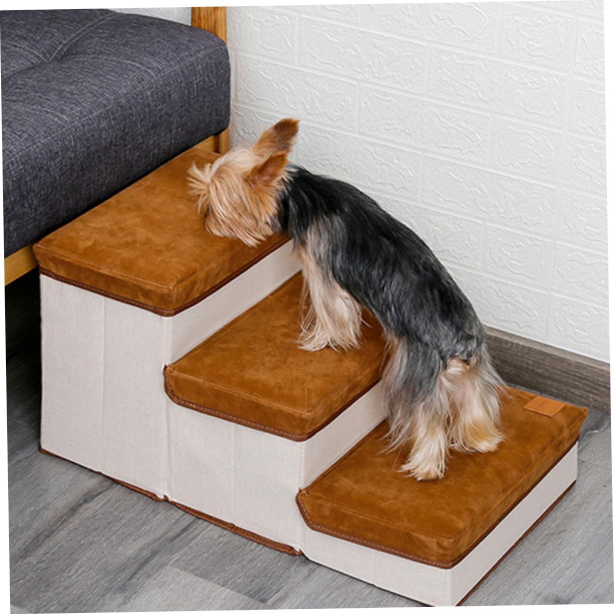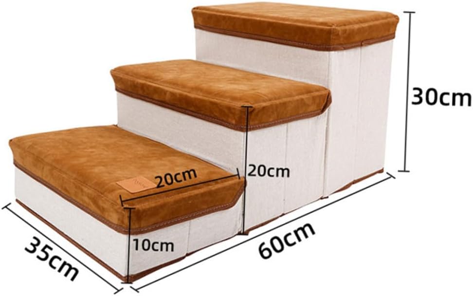 Package List 1 x pet stair Characteristics - Material: Flannelette, cotton. - Color: Brown. - Size: About 60.00X35.00X30.00cm/23.58X13.76X11.79inch. -Product Info:Pet ladder - Simple and stairs can be perfectly integrated into any home style Indoor Dog Ladder. - Compact and small, it's easy to store, not taking up any space Stair for Puppies. - Large storage space for your dog's clothes, leash, blankets and care tools Pet Climbing Plaything. as a stairway for your dog and a storage box for your dog's belongings Pet Playing Stair. - Soft material, you can enjoy your feet when walking on each step.Goods InformationPet Supplies This climbing ladder is durable, also safe to play.Pet Accessory Encourages your small pet to exploration and exercise.Dog Stair A good choice for your lovely pet to help alleviate the loneliness and .Dog Stair Ladder Let your pet play with it when