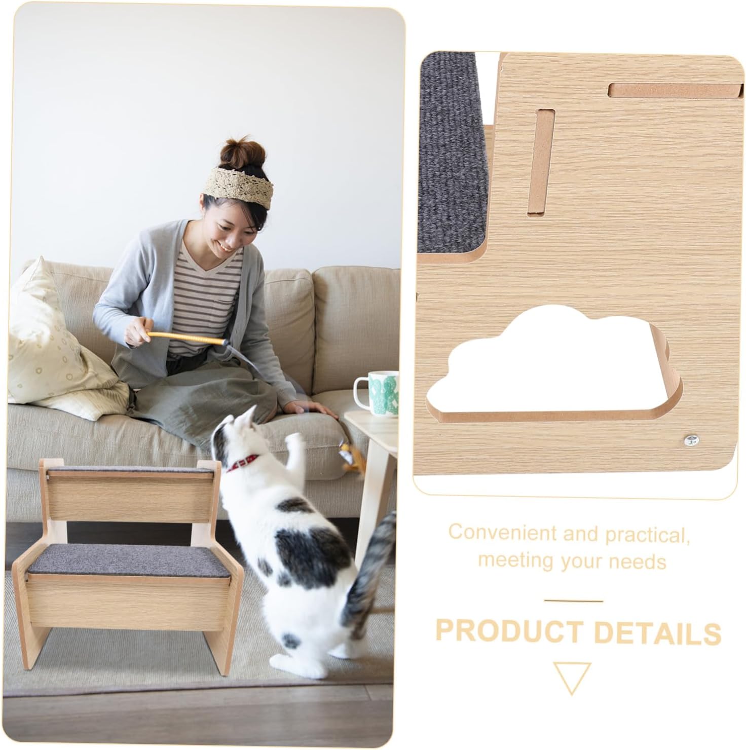 Package List 1 x pet ladder Features - Pet stair: features the simple installation and convenient storage, your pet can play and jump with it dog steps. -Material:Wood dog ramps -Product Info:Wooden dog staircase -match Style: The pet step features style, so any home style can be perfectly integrated dog stair. - Fine workmanship: this pet stair can be applied for a lasting time and many times pet stairs step. -Size:35.00X30.00X29.00cm/13.76X11.79X11.40in pet steps for small dogs -Color:Multi Stairs For Dog - Easy to Carry: You can carry it when travelling with your lovely dogs dog steps for sofa. - Portable Design:This pet steps ladder is portable and lightweight, which is easy for carrying when you are traveling with your pets pet stair.Goods Descriptionpet staircase The safe material not only adds a touch of luxury but also provides a non-slip surface for pets to confidently climb.dog stair The Pet Staircase Climbing Steps for Cats and Dogs is a must-have for pet owners who want to provide their furry friends with easy access to elevated surfaces.pet stairs step Whether it's helping an older pet reach their favorite spot or assisting a pet with joint issues, this staircase is designed to make their lives easier
