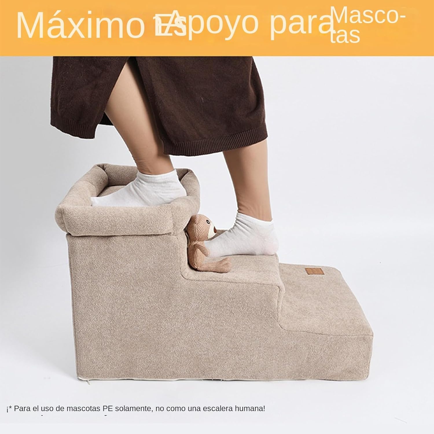 The non-slip dog steps are designed with animal lovers in mind, offering a safe and convenient solution for pets at home or in the office. With a non-slip exterior, these steps ensure stability and safety during daily use, making them ideal for recovering pets or older animals in need of support. The washable material ensures easy cleaning, maintaining hygiene in any environment. These versatile steps can be placed next to beds, sofas, loft beds or even in cars, solariums, bedrooms, living rooms, studios or near windowsills. Specification: Product size: about 60x35x37cm/23.62x13.78x14.57inch (see picture for details) Product material: fleece/polyester. Load capacity: maximum load capacity up to 30 kg. Product List: 1 x dog stairs. Notes: Due to the different lighting and screen settings, the item's color may be slightly different from the picture. Due to manual measurement, there may be errors in the product size, please understand.