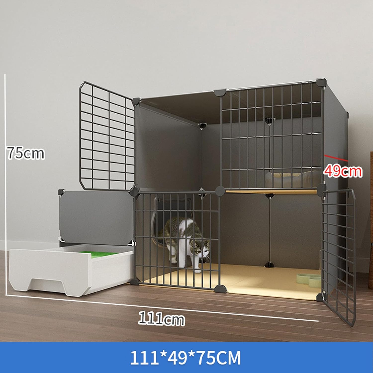 The DIY Cat Cage is thoughtfully crafted with your feline friend's health and comfort in mind, while also incorporating features that simplify life for pet parents. This versatile cat enclosure is ideal for small living spaces, making it perfect for apartments or homes with limited room. It also serves as a practical solution for cat rescues and shelters, providing a safe, secure environment for your beloved cats. Constructed from durable metal and ABS plastic, this cat cage offers a customizable setup. The panels can be easily assembled into various shapes, sizes, and heights to meet your specific needs, allowing you to create a space that fits seamlessly into your home. Included in the package are essential items for your cat's care: a cage panel, a cat litter box, a cat litter shovel, and a ladder for easy access. This all-in-one solution ensures that your cat has everything they need in a single purchase. Please keep in mind that there may be slight variations in color due to differences in computer monitors, and manual measurements may result in a 1-3 cm error. If you have any questions, feel free to reach out via email; we are committed to responding within 12 hours. Choose the DIY Cat Cage to provide your cat with a secure, comfortable, and stylish living space, while also making your life as a pet parent easier.