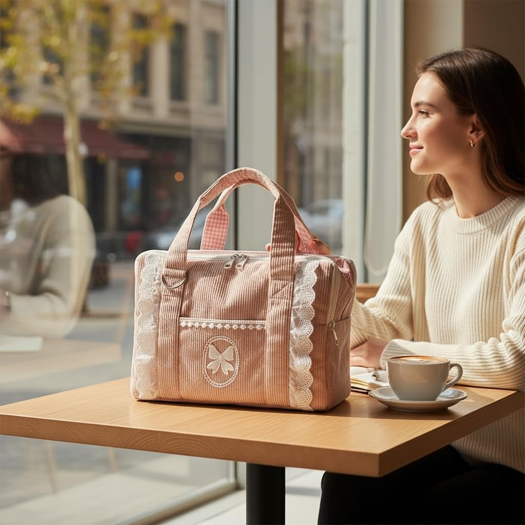 Travel in style with this charming salmon pink corduroy pet carrier, beautifully accented with lace trim and bow details. Designed for small cats and pets, it offers a spacious interior and durable handles for comfortable transport. The soft, textured corduroy creates a cozy resting spot for your furry friend, while the delicate lace adds a sweet, vintage-inspired touch. With ample ventilation and easy-access openings, this carrier is as practical as it is pretty. Perfect for vet visits, day trips, or weekend getaways, this feminine tote combines functionality with timeless charm. Its roomy interior ensures your pet stays comfortable while you enjoy carrying an accessory that’s both stylish and pet-friendly.